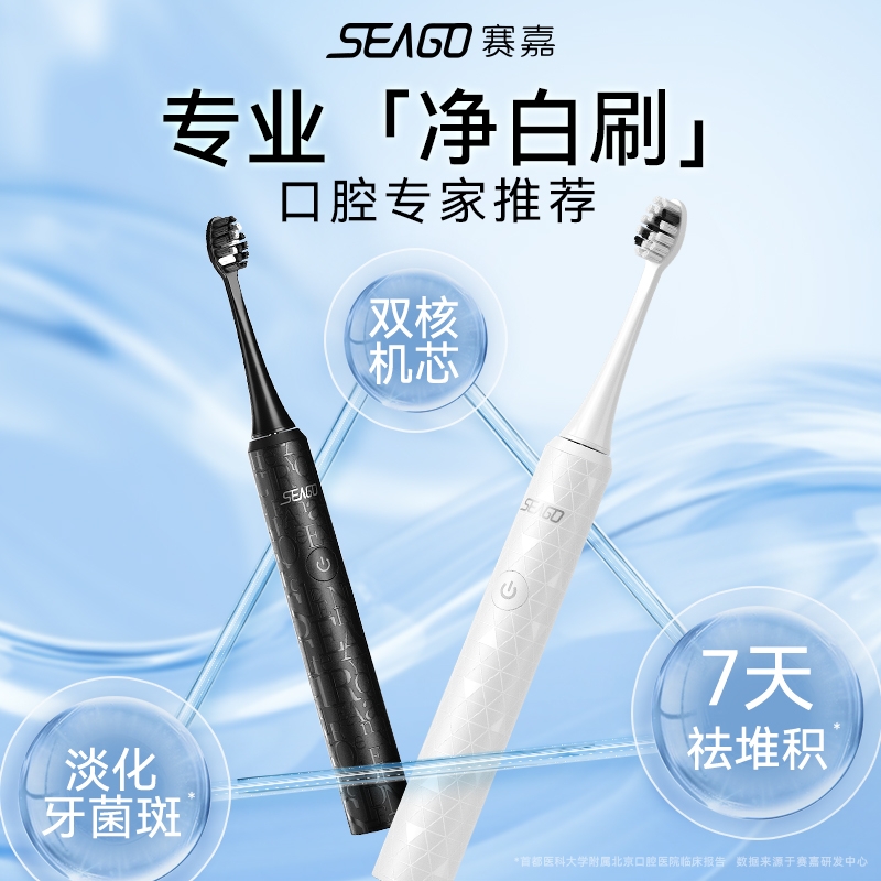 甄选食品级杜邦刷丝顶端磨圆不伤牙;快充2小时,续航30天跟上你的快节奏;30秒换区提醒,2分钟自动关机,每一秒都精确掌握
