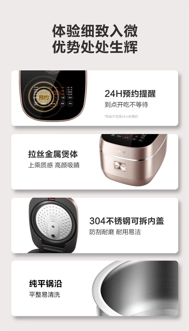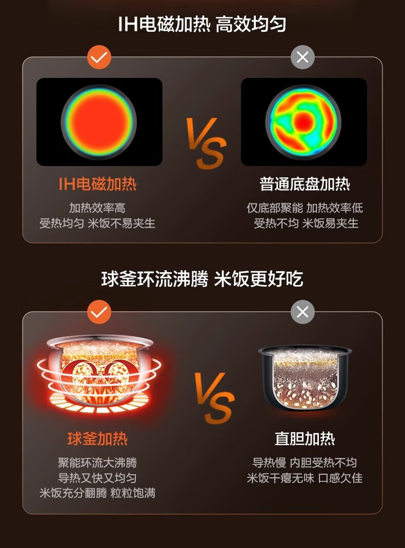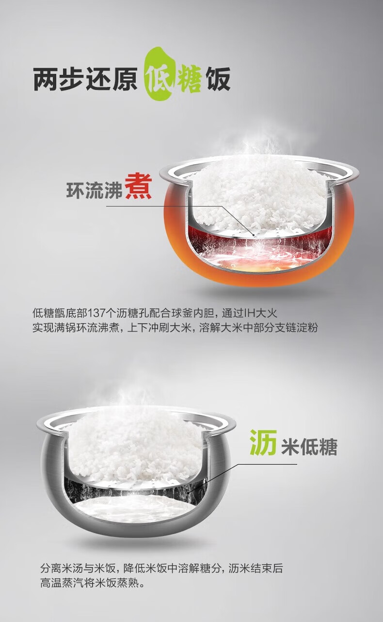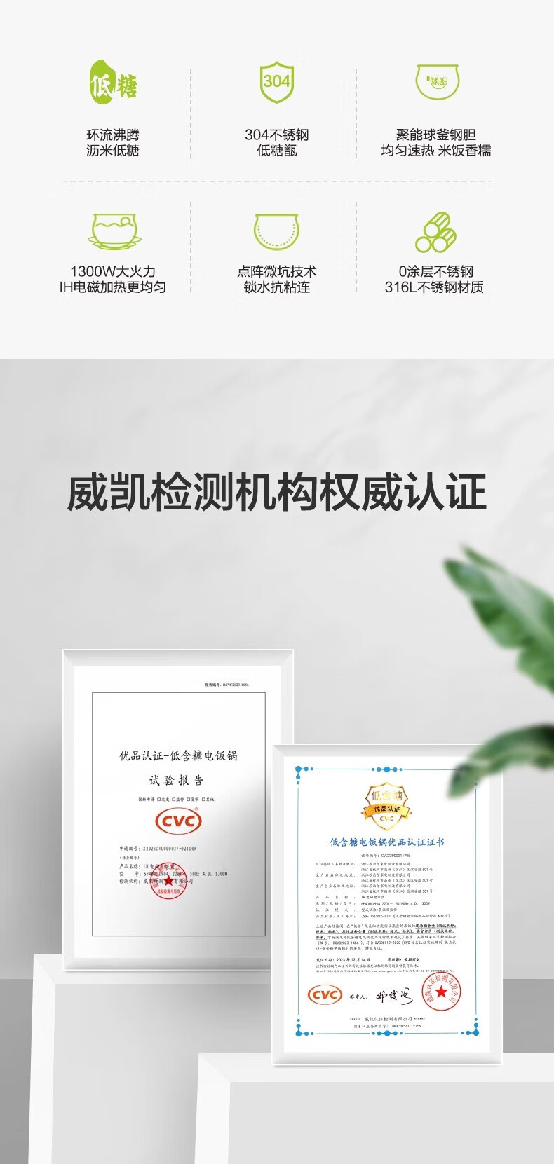 316L球釜钢胆,粒粒透芯香甜;2代点阵微坑内胆,锁水抗粘 3.304不锈钢低糖; 304食品接触用不锈钢可拆内盖 ,高档易清洁