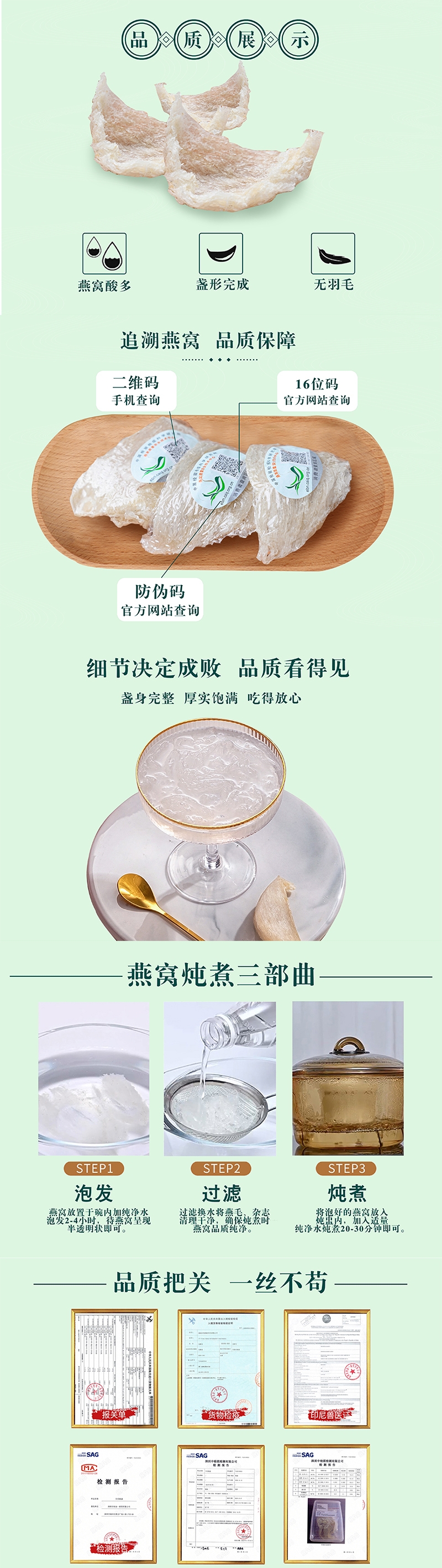 进口溯源码;产地、品质有保障;白燕窝(燕盏)