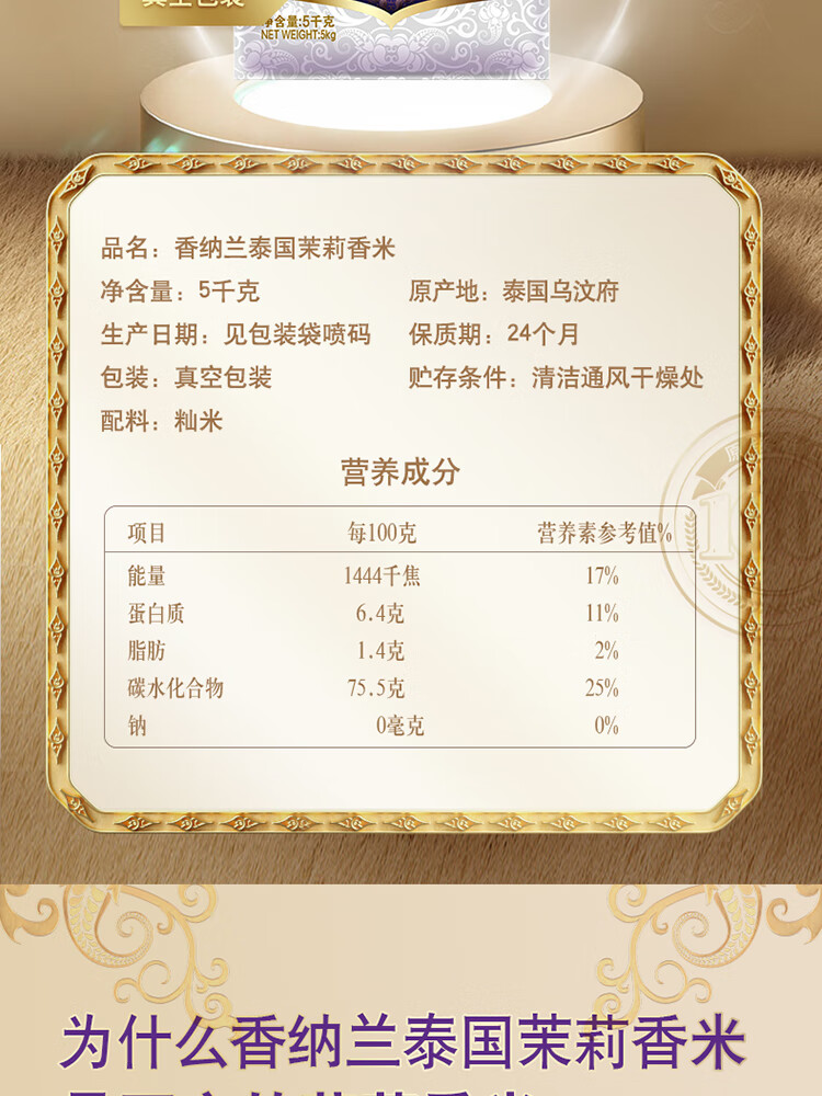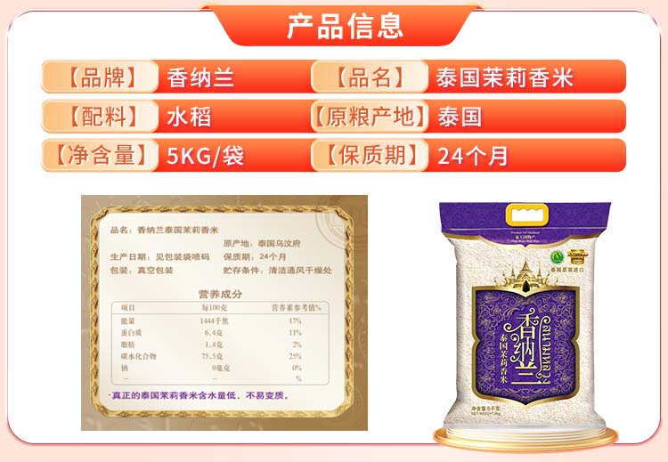 香纳兰 进口泰国茉莉香米5KG