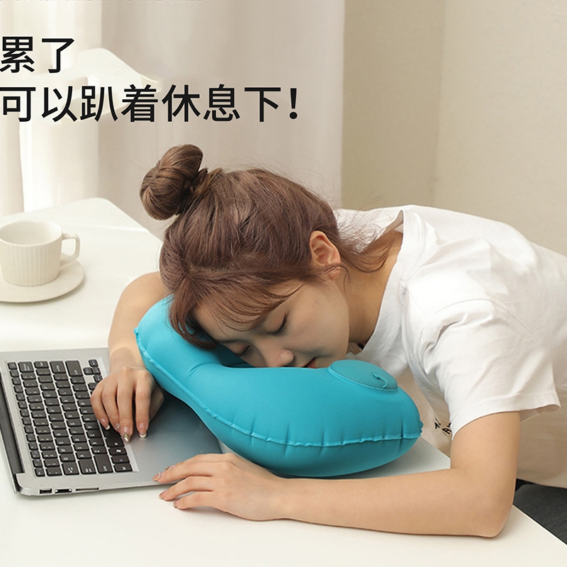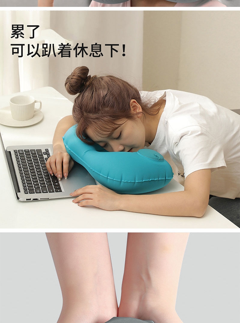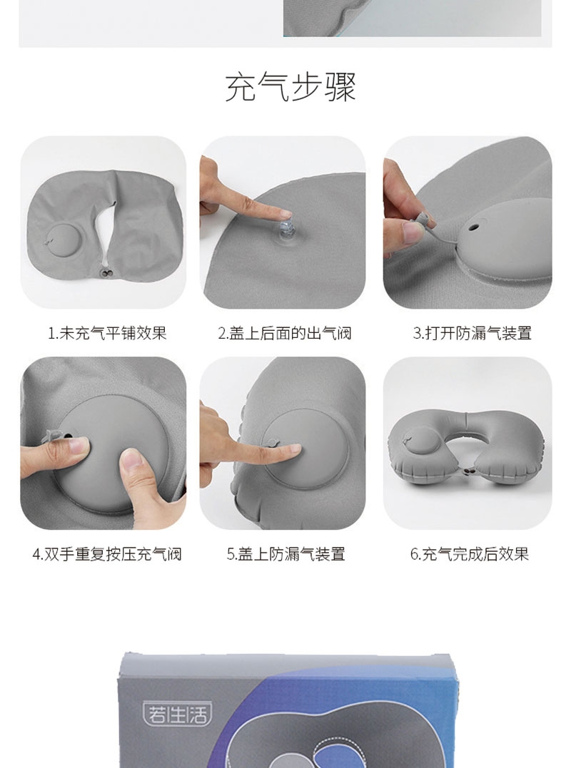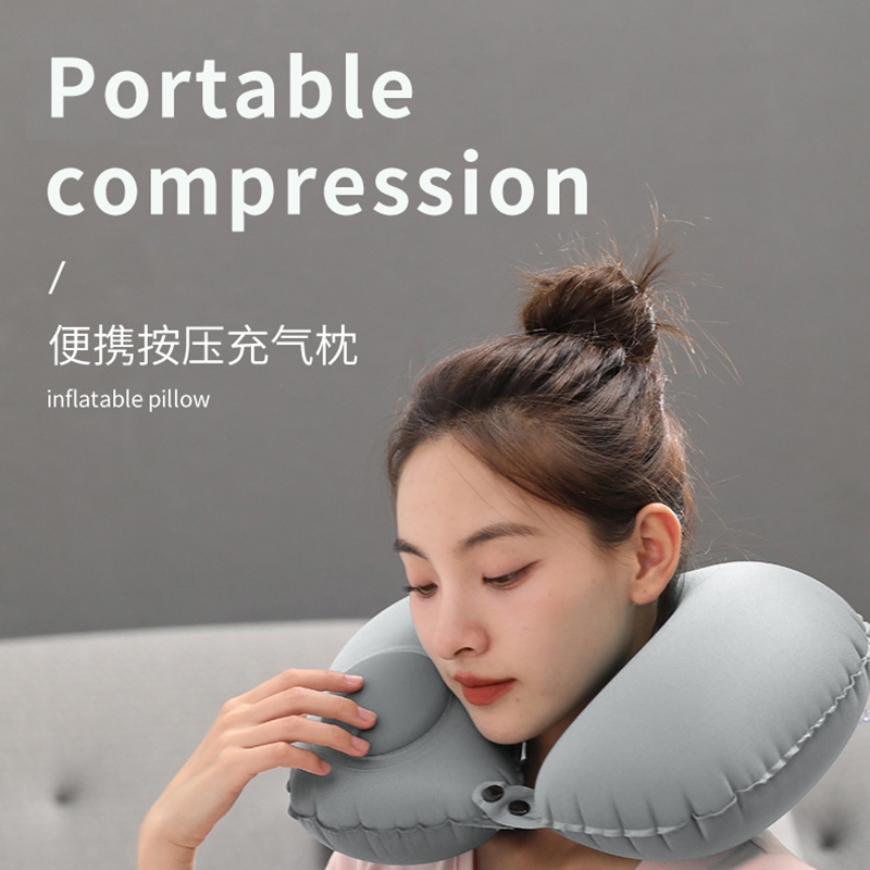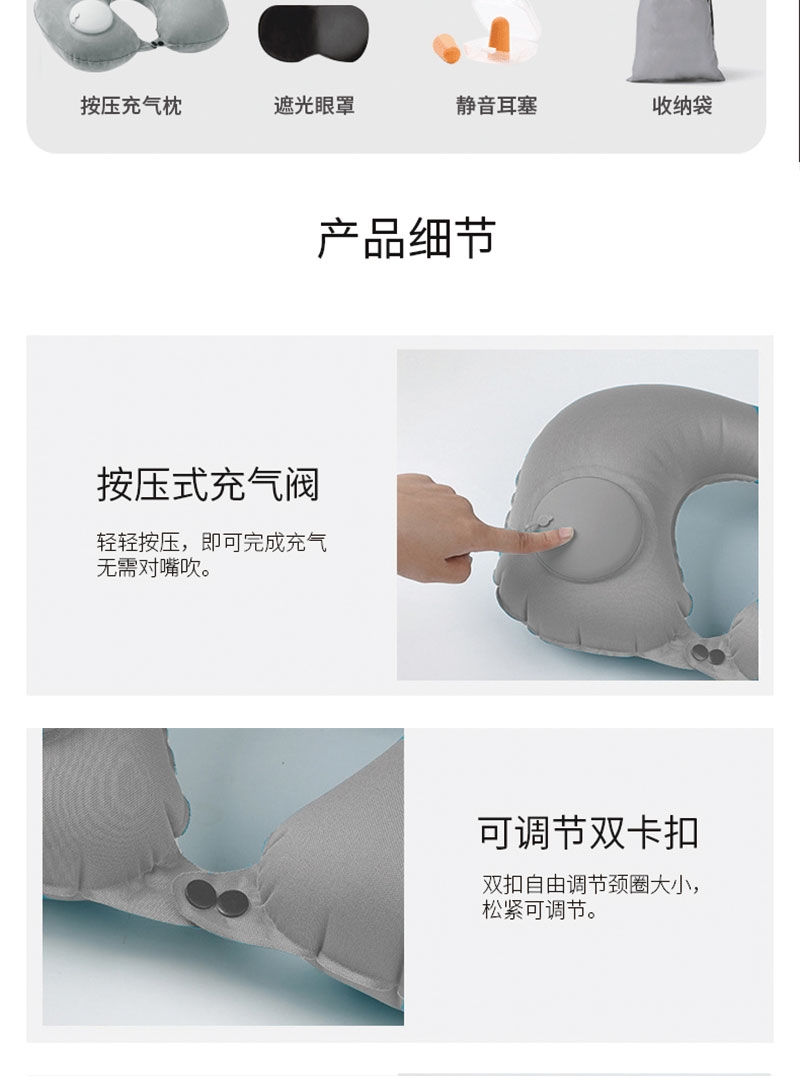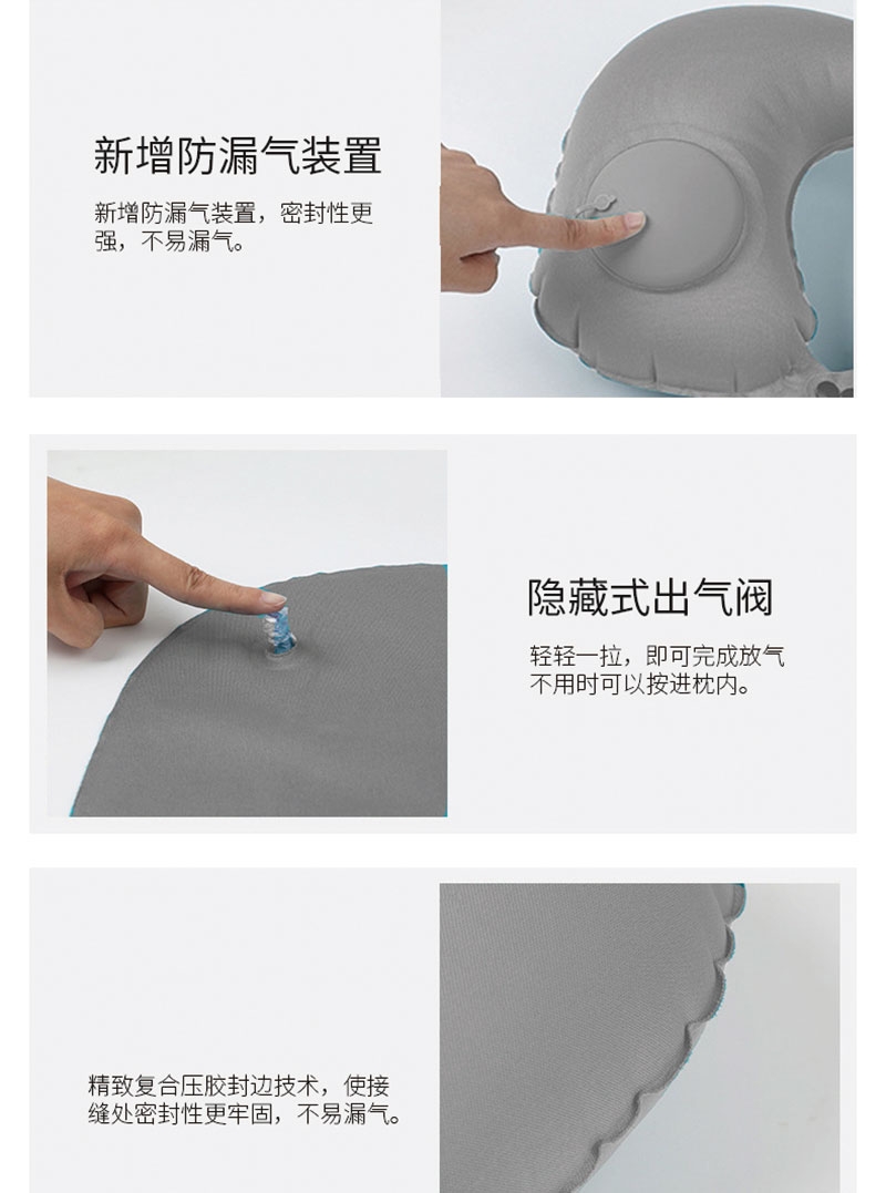 圆形设计,自然贴合;按压式自动充气枕;便携式方便携带