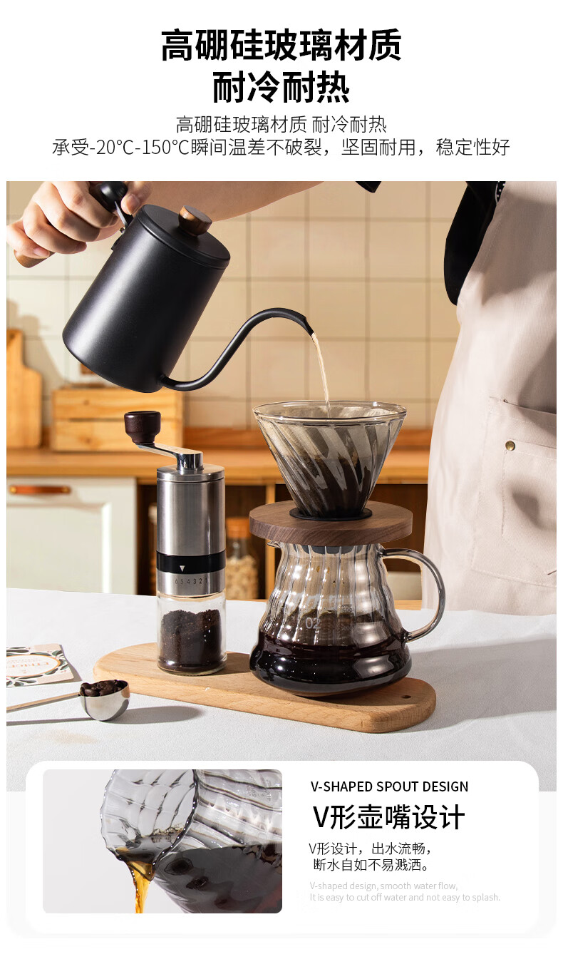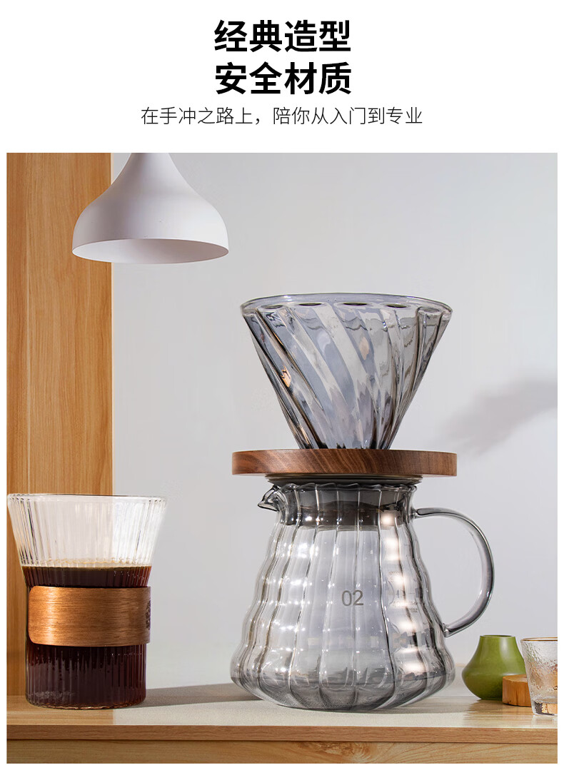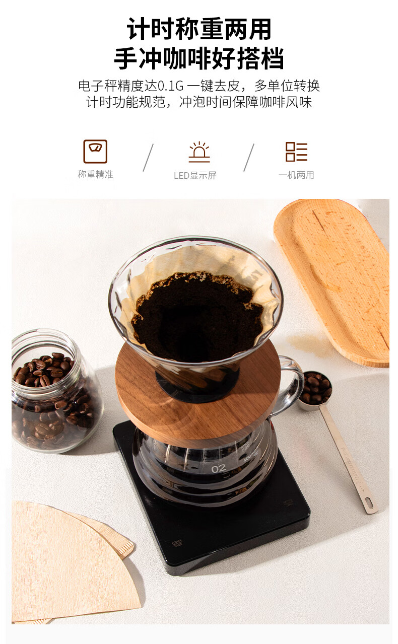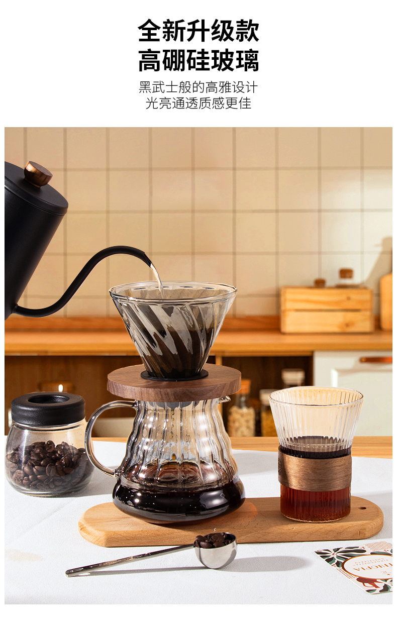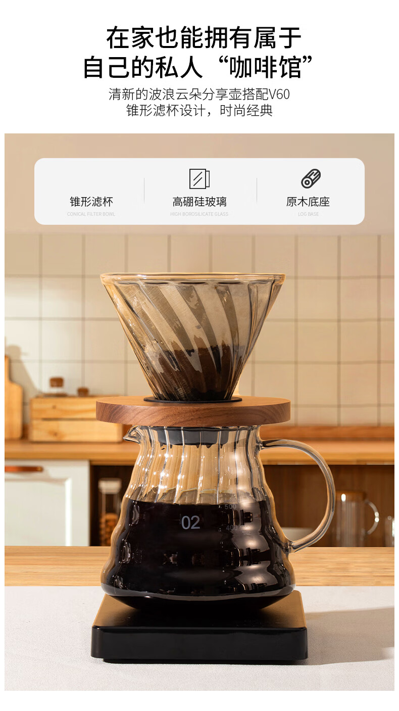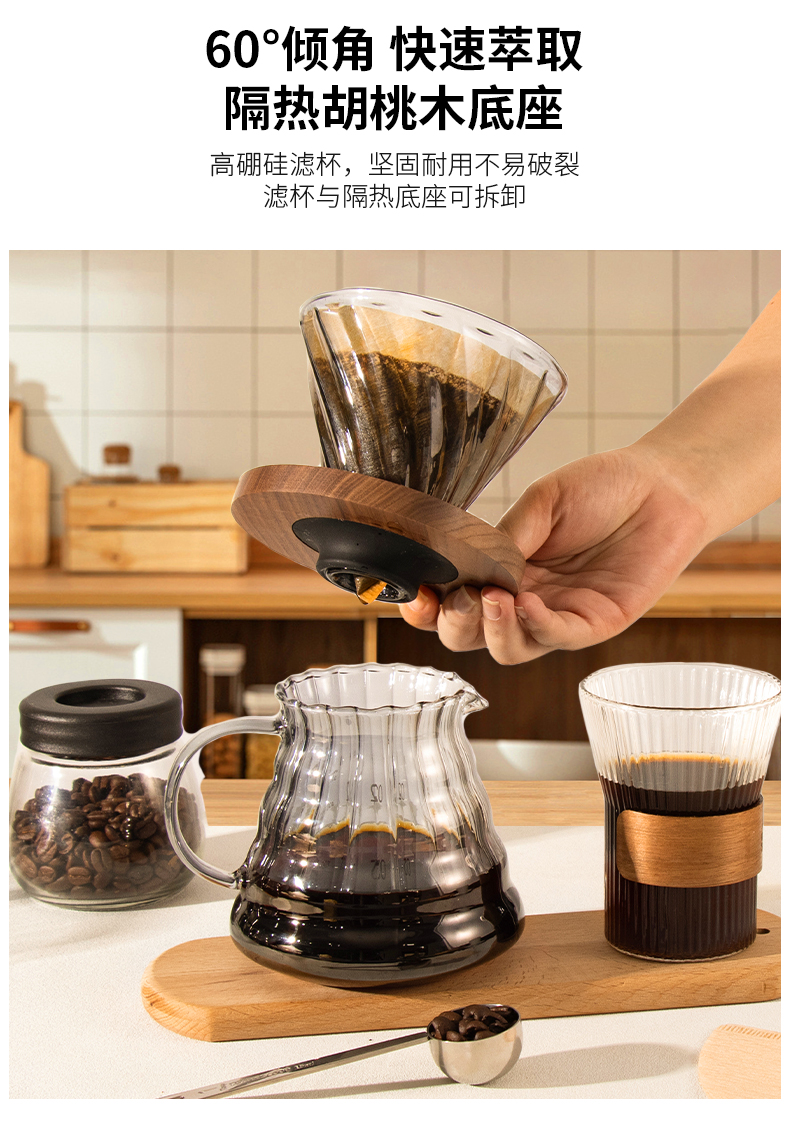 隔热胡桃木底座;手冲自动计时;高硼硅玻璃材质