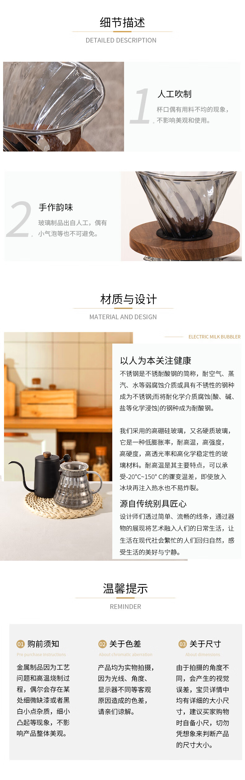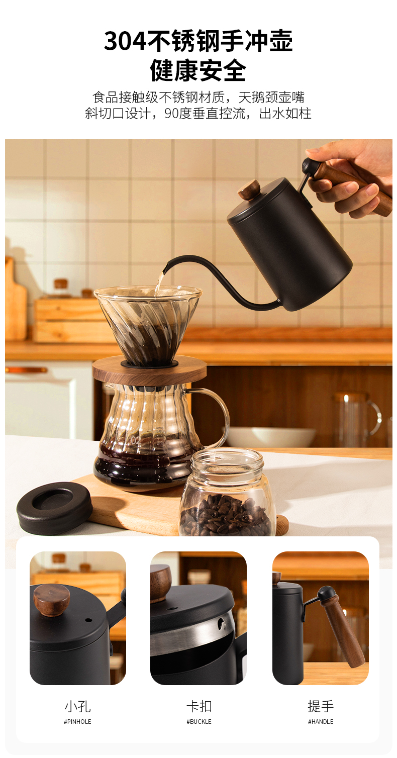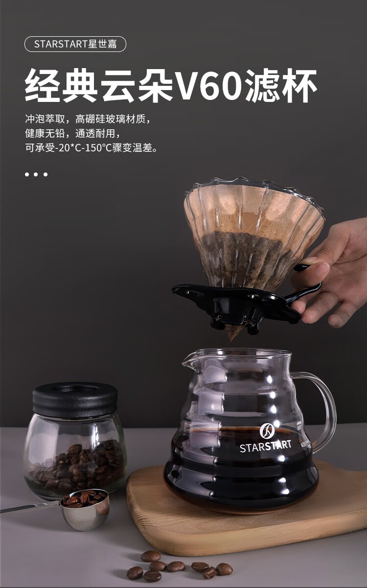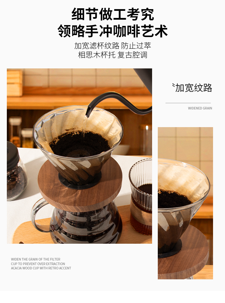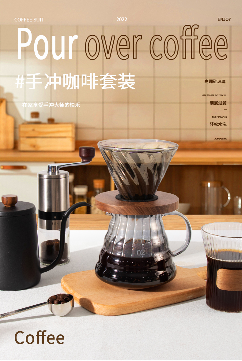 隔热胡桃木底座;手冲自动计时;高硼硅玻璃材质