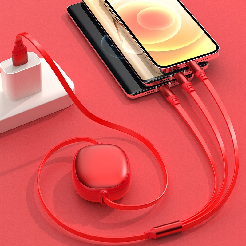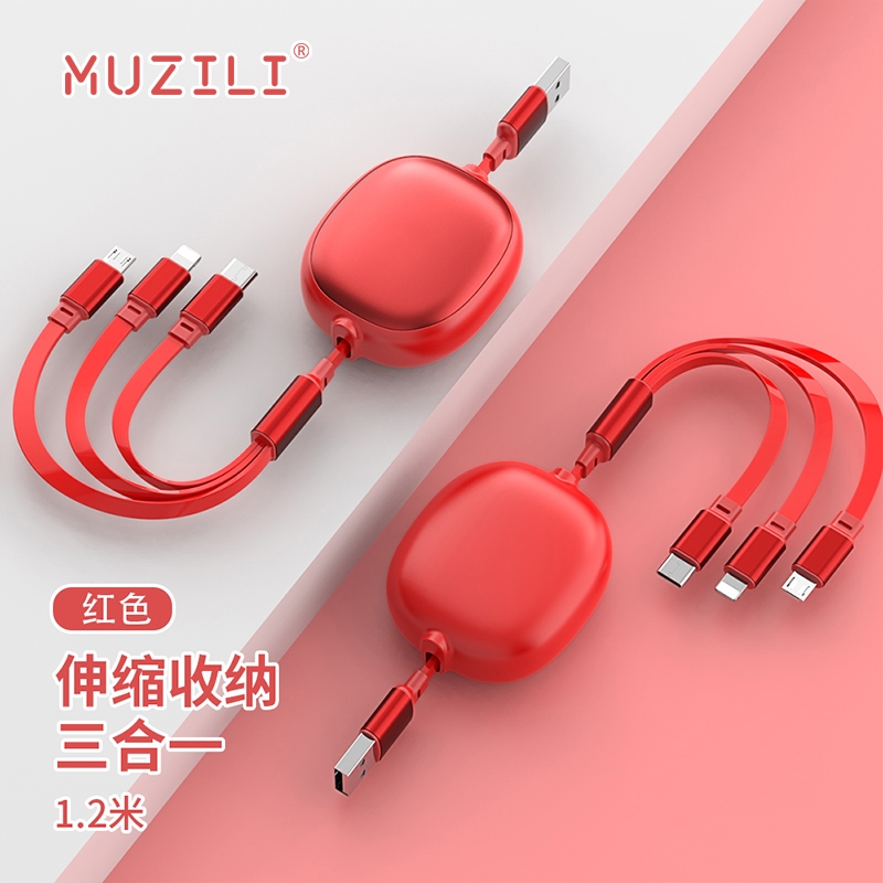 一拖三伸缩设计,兼容苹果15系列;66W超级快充,充电更快;三种接口满足各种手机;1.2米长度设计,使用方便;TPE材质耐用,铝合金面盖,五档伸缩调节