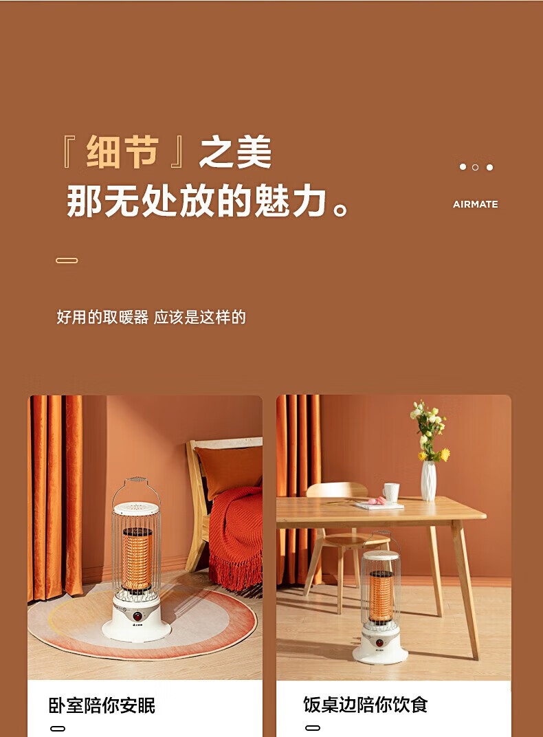 艾美特 鸟笼小太阳取暖器HT16015-W