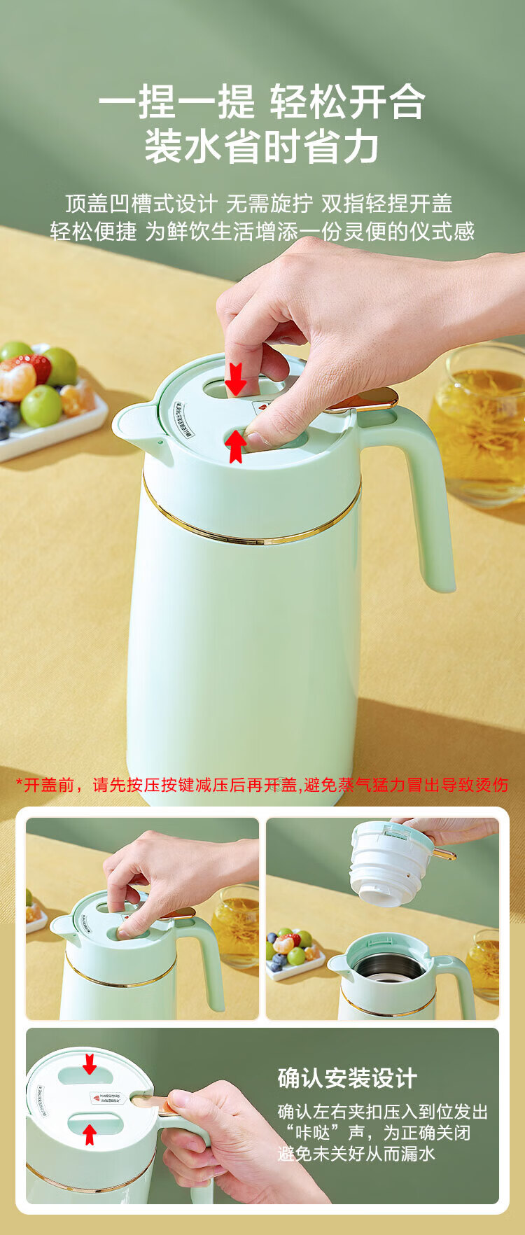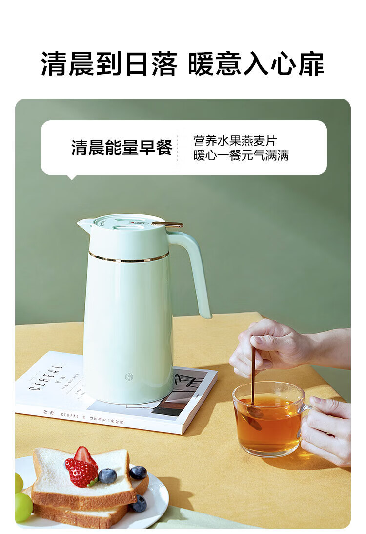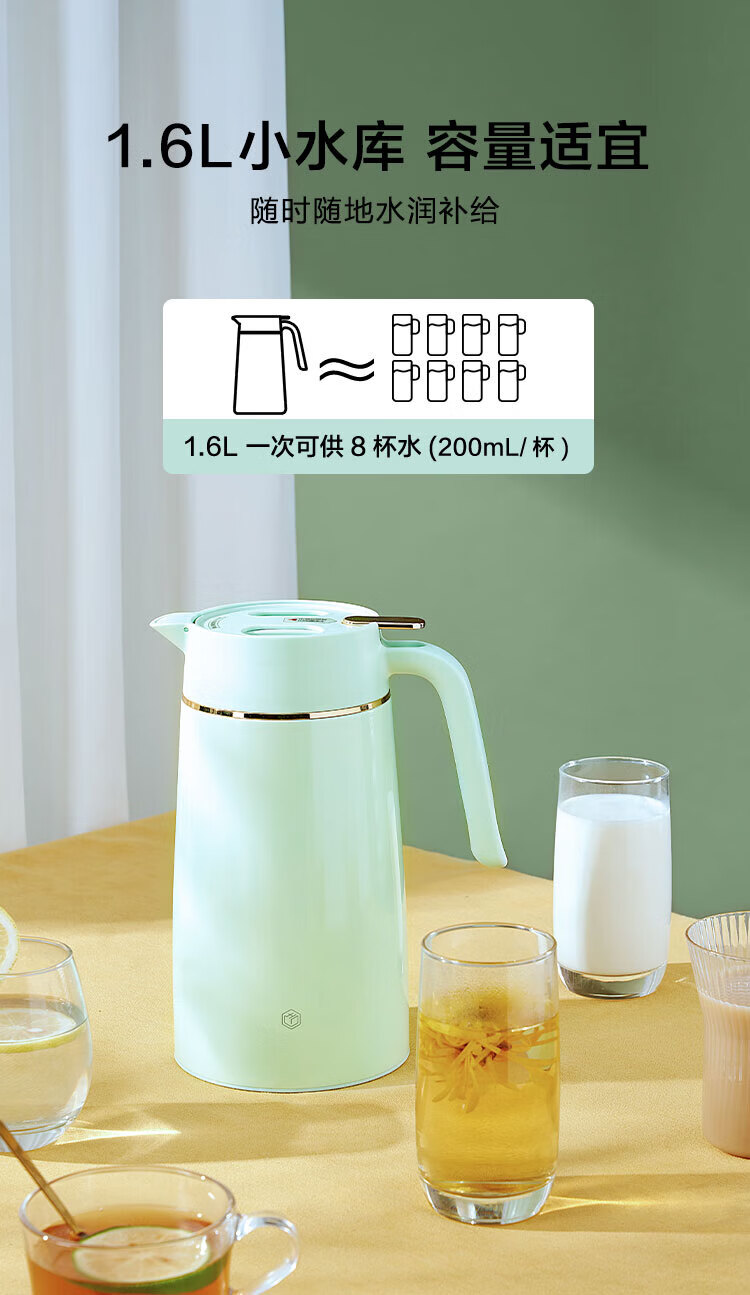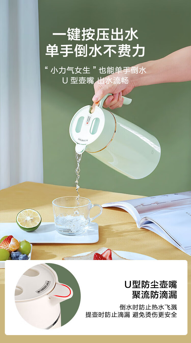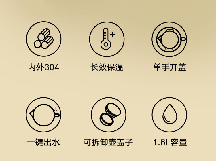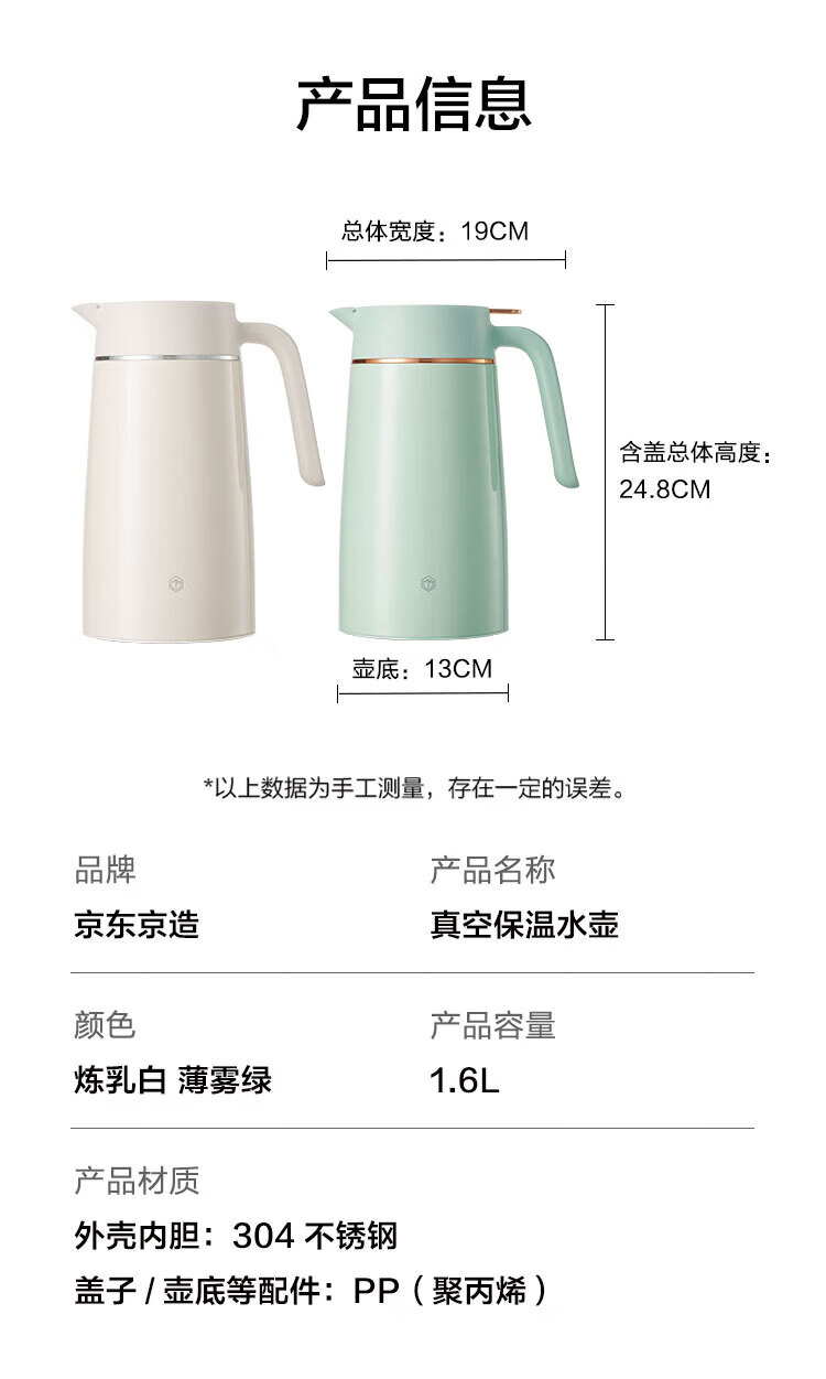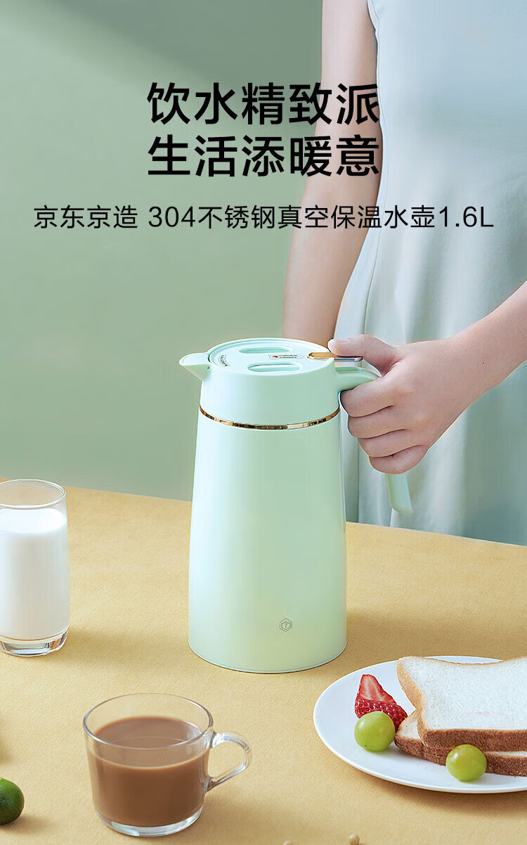 京东京造 304不锈钢真空保温水壶1.6L;304不锈钢内胆健康从“芯”出发内外优选食品可接触;一键按压出水单手倒水不费力小力气女生也能单手倒水