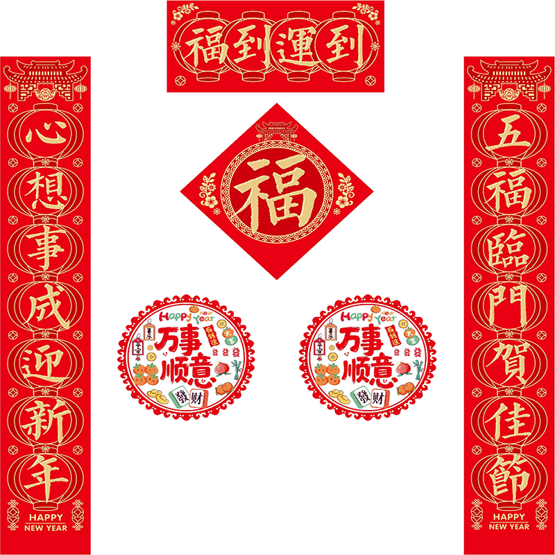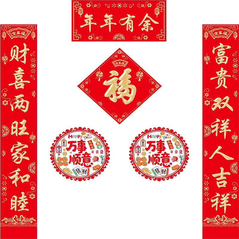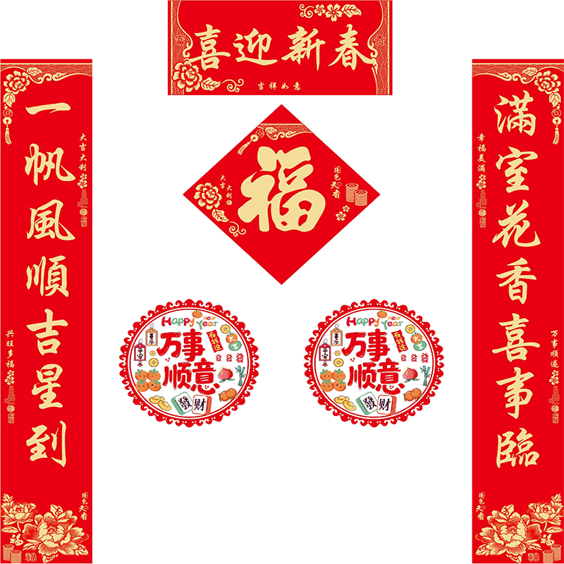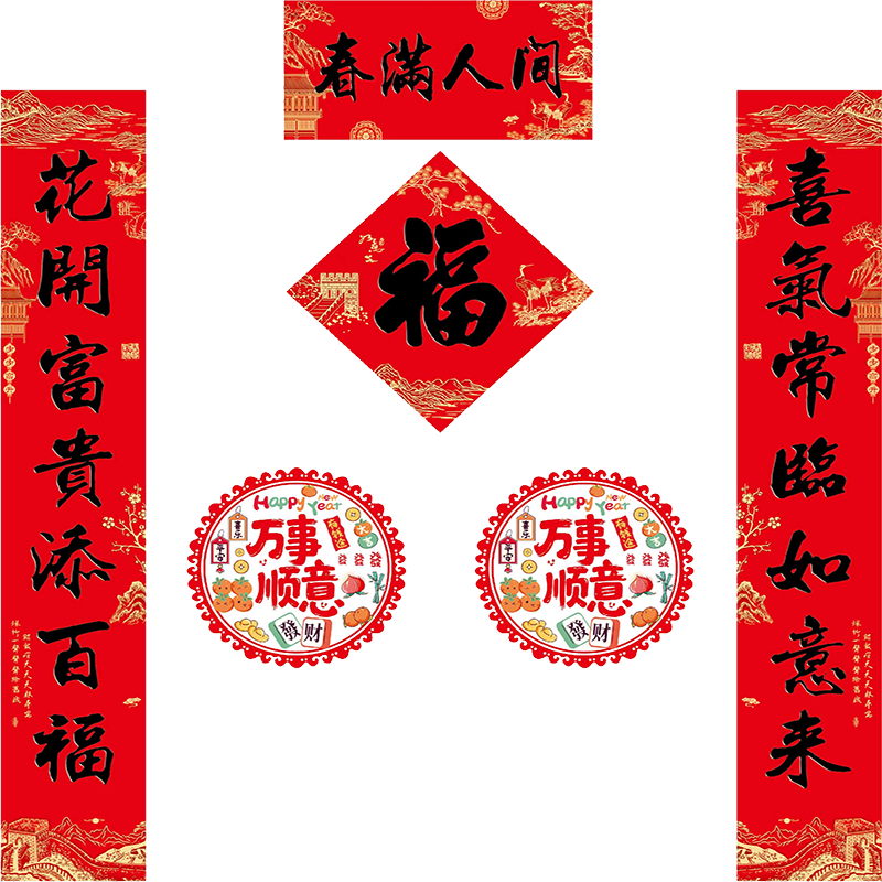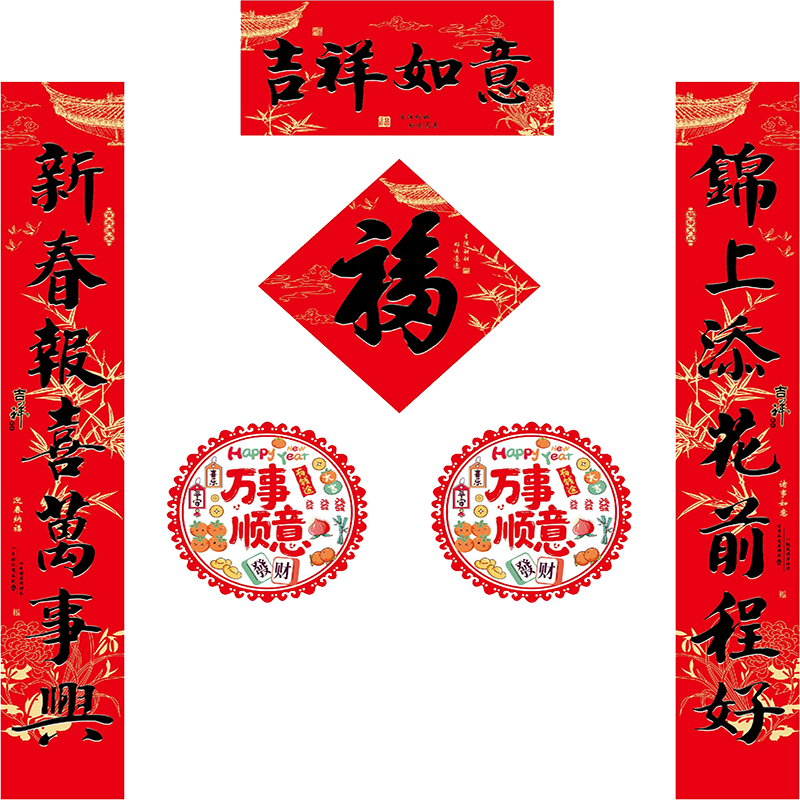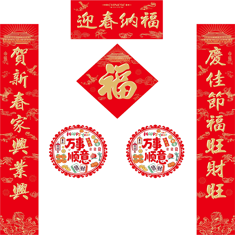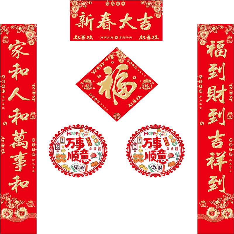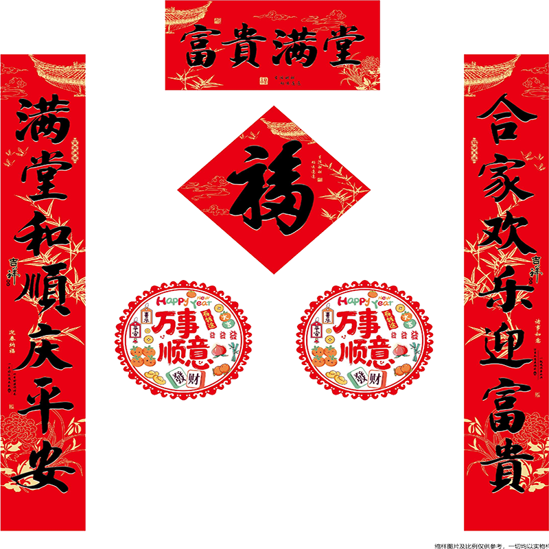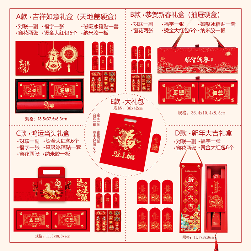 高档植绒烫金对联红包大礼包订制;增添节日气氛或文化氛围;可以作为装饰品挂在室内或室外