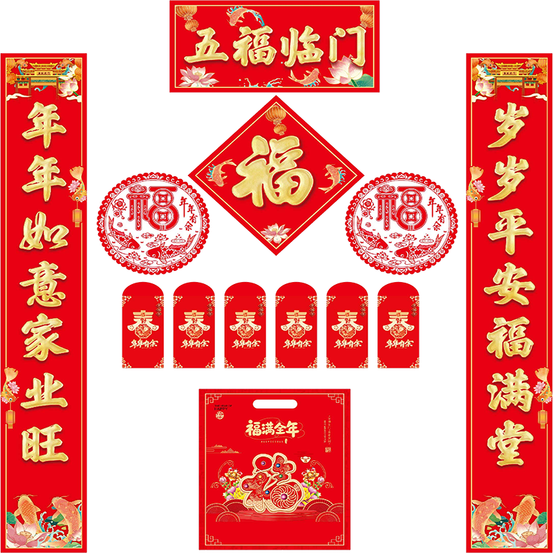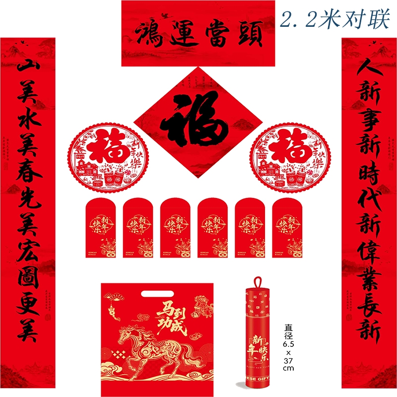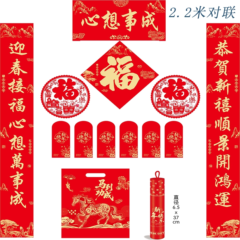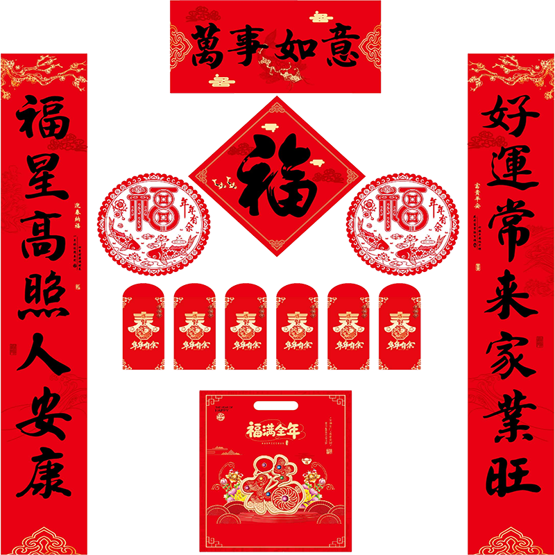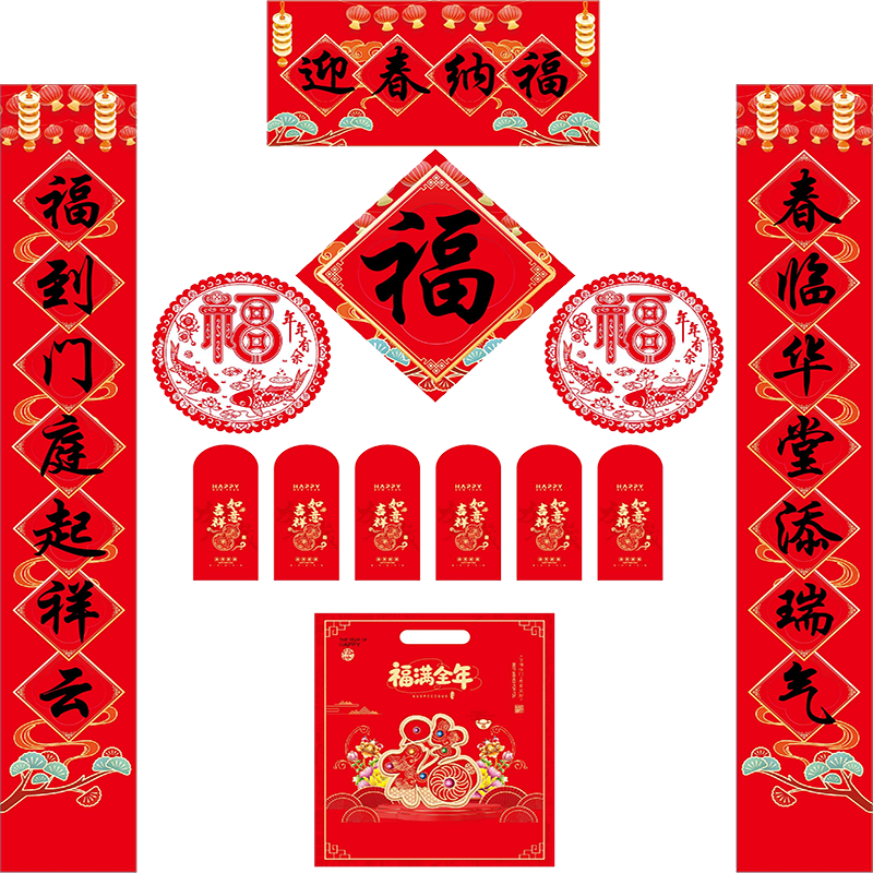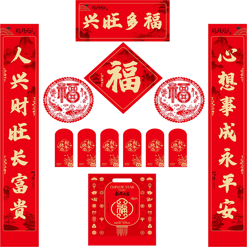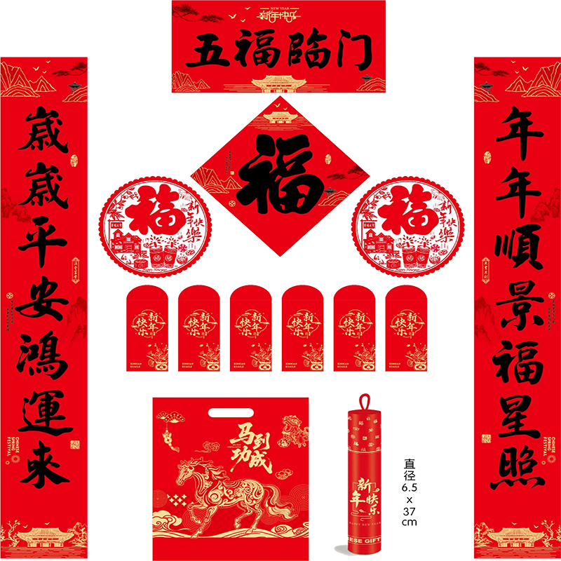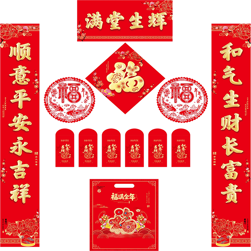高档植绒烫金对联红包大礼包订制;增添节日气氛或文化氛围;可以作为装饰品挂在室内或室外