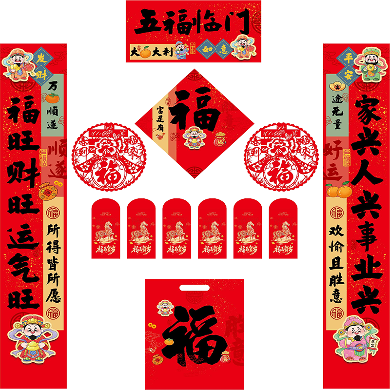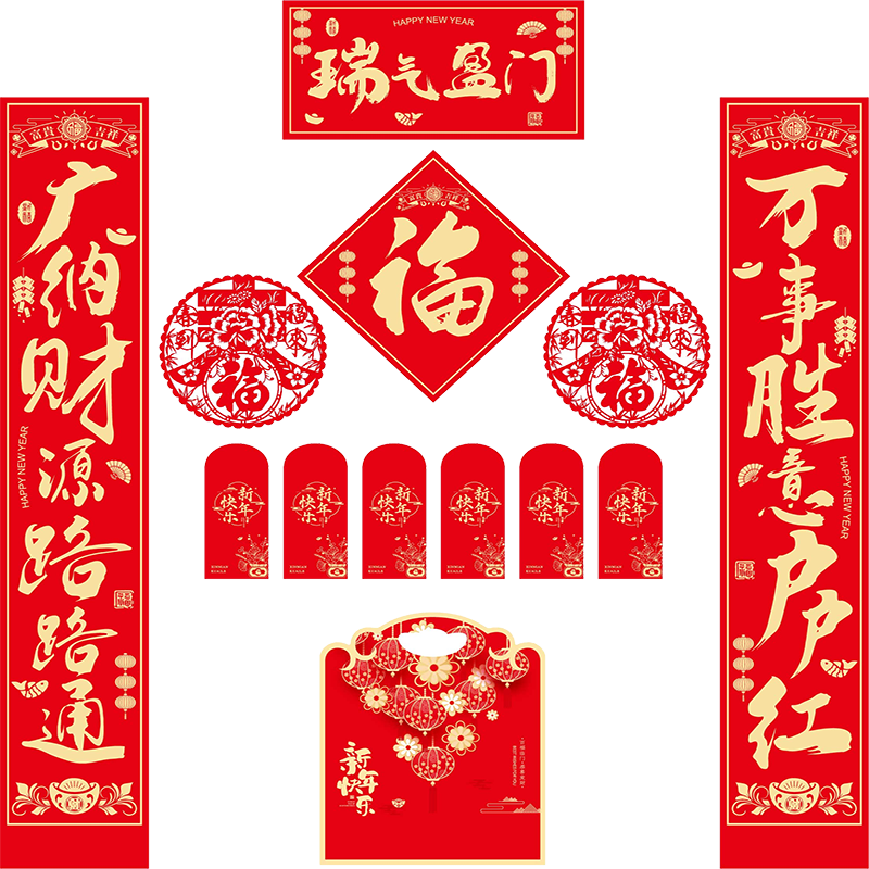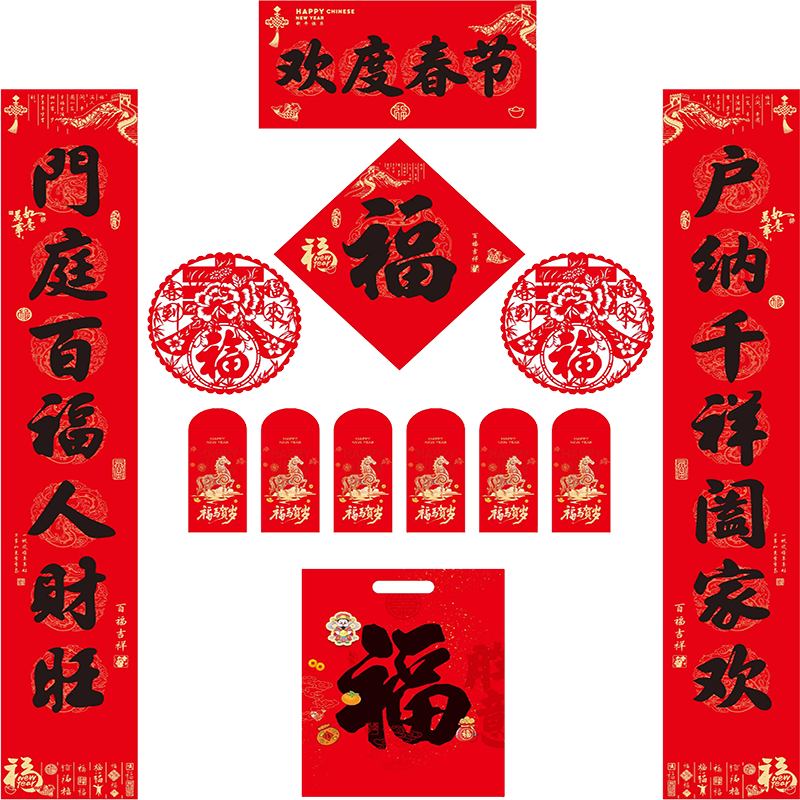 高档植绒烫金对联红包大礼包