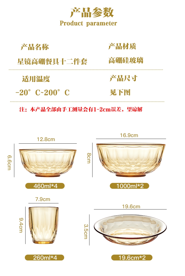 产品参数:小碗460ml*4、 杯260ml*4、 盘196mm*2、大碗1000ml