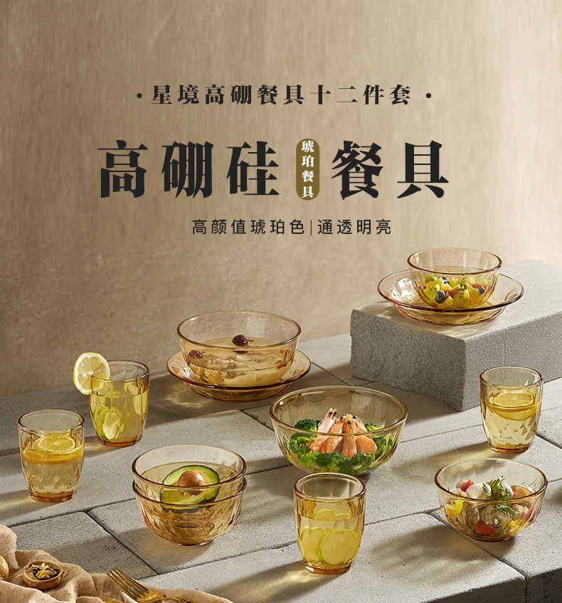 产品采用高硼色料玻璃材质,颜色与生俱来,永不退色;烤箱、微波炉、冰箱冷冻放心使用;用线条勾勒几何切面,以面为境折射时光、徜徉星空。