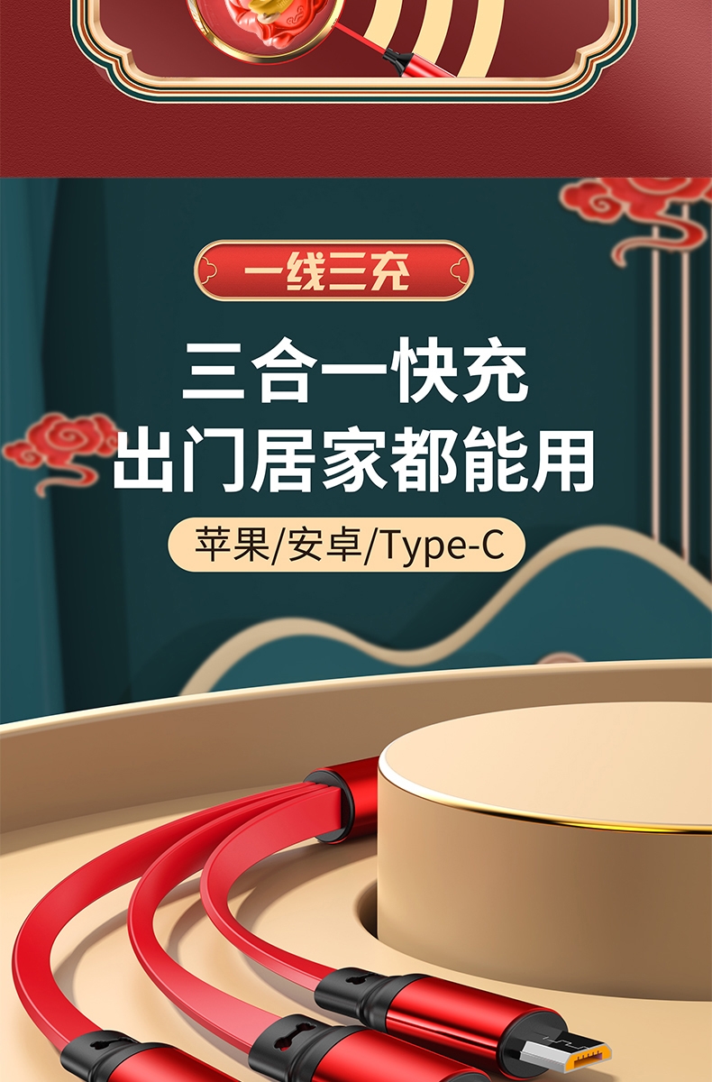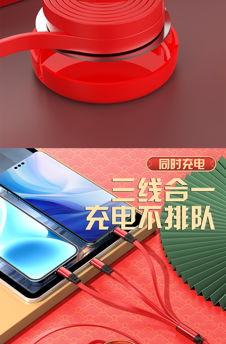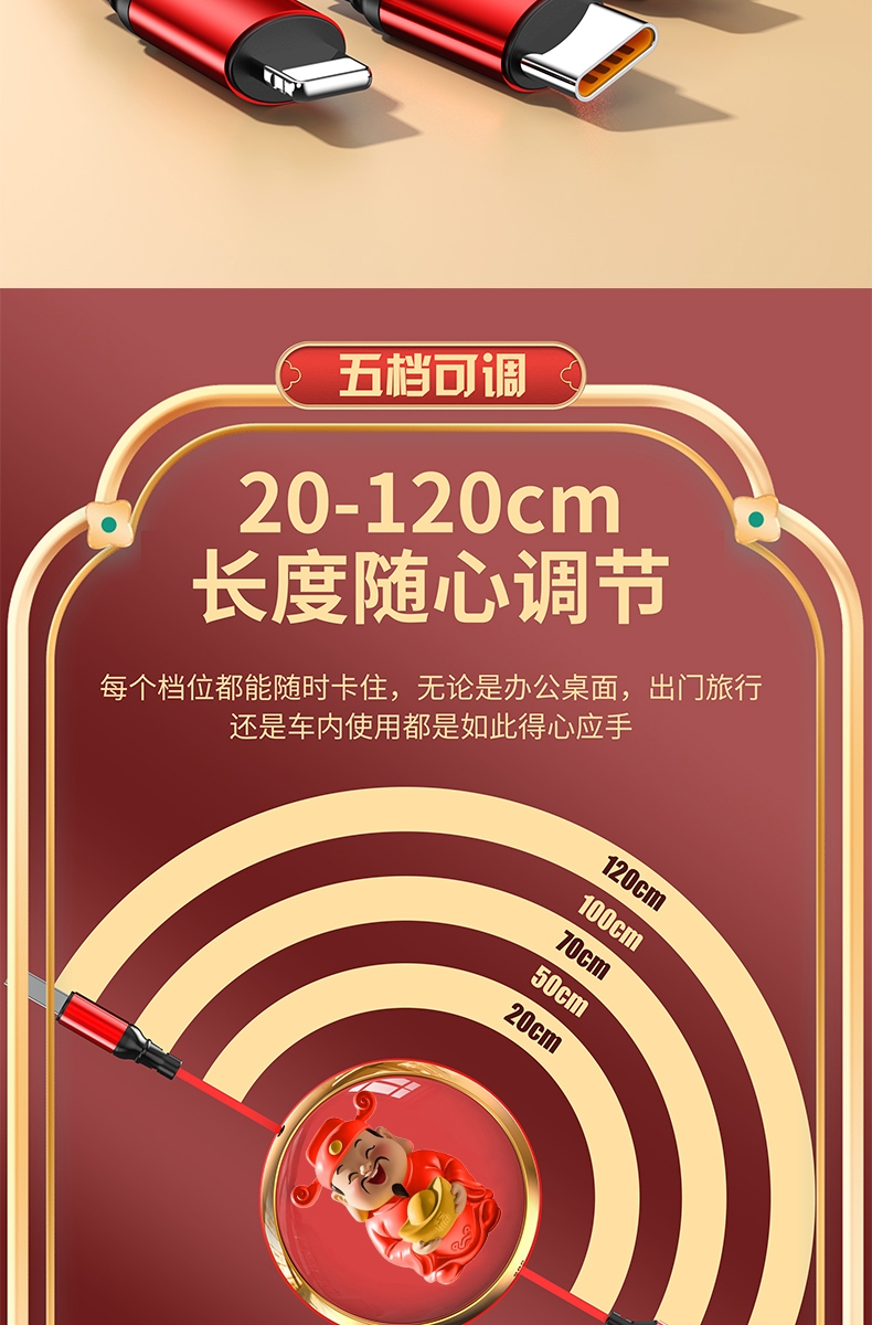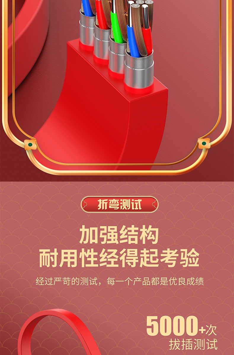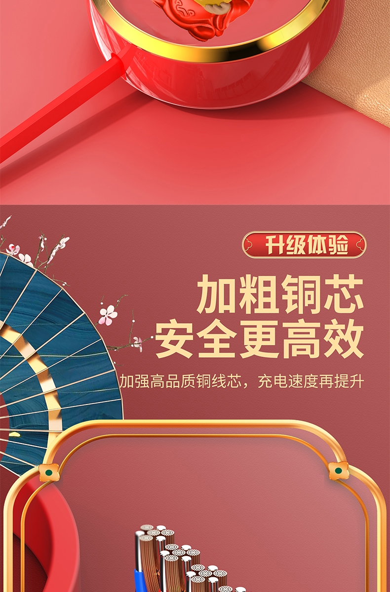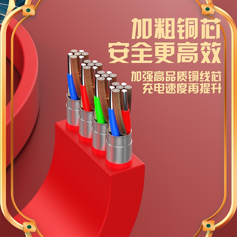 开门红元素,做工精致;充电42支0.07×2芯+数据12支0.07×2芯;正面开门红元素 可随意更改自己喜欢的LOGO