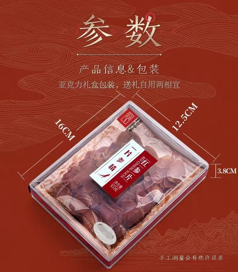长白山人参 红参片2cm亚克力盒100g