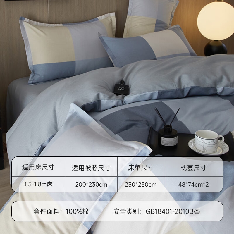 配置清单:被套*1、床单*1、枕套*2、包装*1