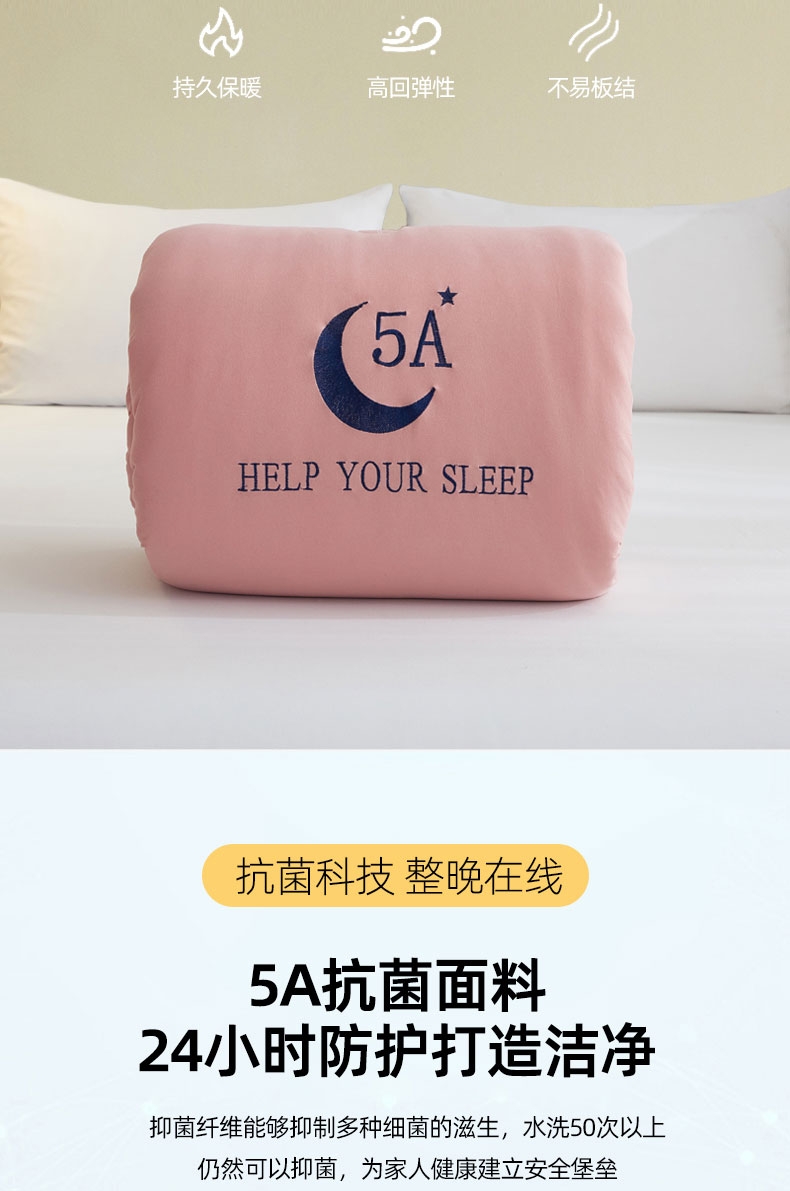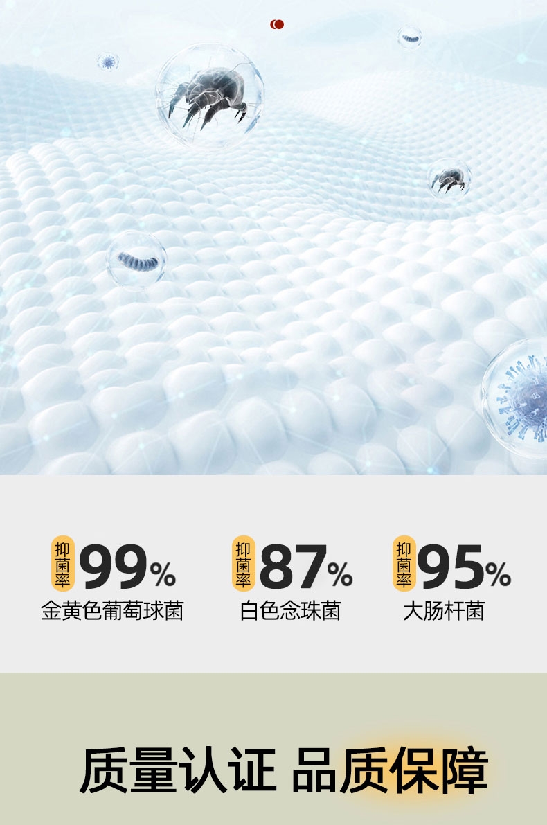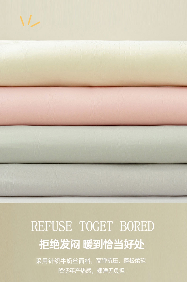 甄选针织牛奶丝面料,高弹抗压,裸睡无负担;5A抗菌面料,24小时防护,为家人健康建立安全堡垒;采用定位绗缝设计,不跑棉,不易团结