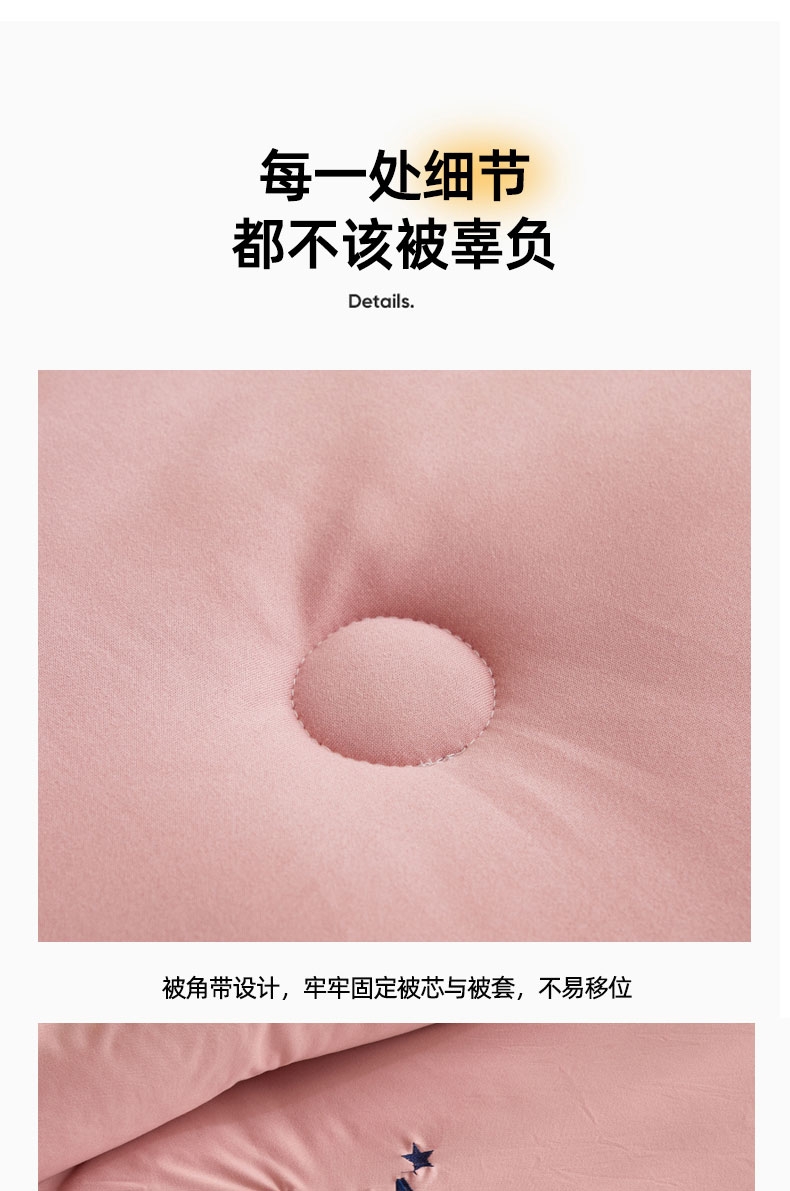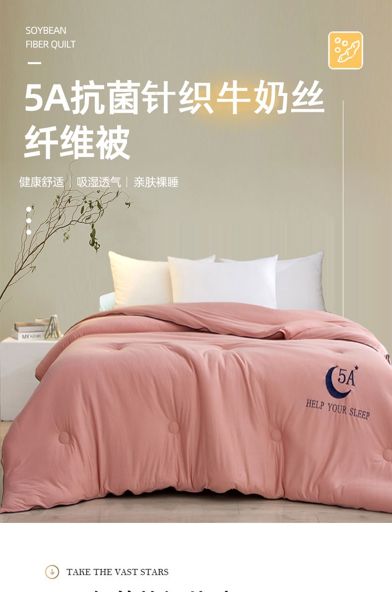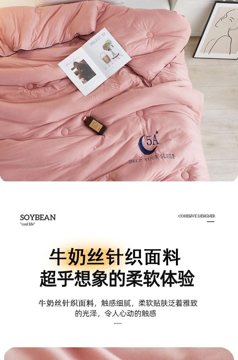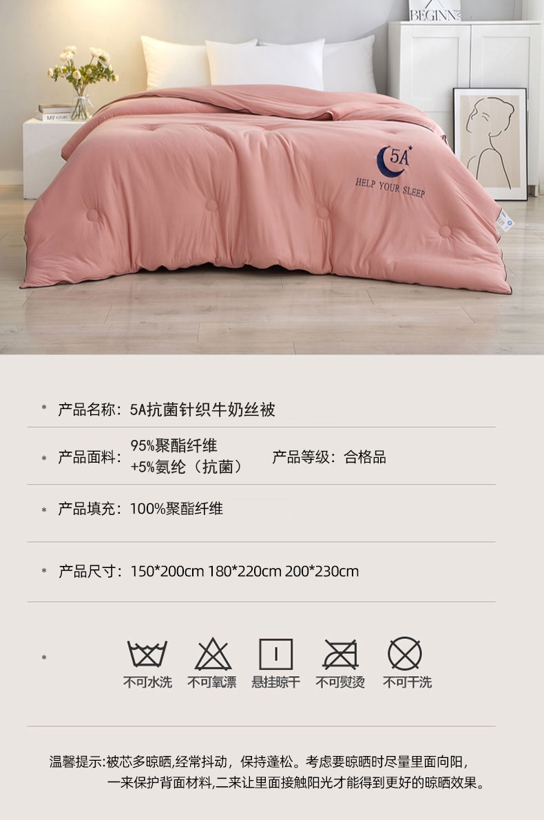 甄选针织牛奶丝面料,高弹抗压,裸睡无负担;5A抗菌面料,24小时防护,为家人健康建立安全堡垒;采用定位绗缝设计,不跑棉,不易团结