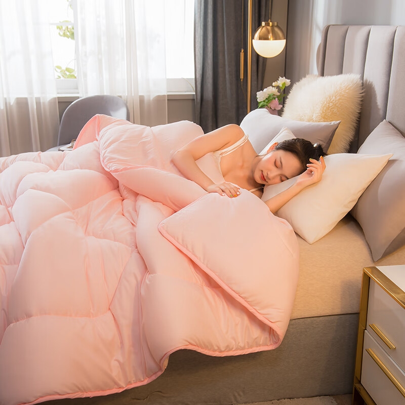 甄选轻柔蓬松羽丝绒,轻盈饱满超蓬松,温暖更加均衡;柔软亲肤面料,干净细腻,睡在其中像被云朵围绕;绗缝定型锁温,有效固定填充物的同时,让被子更美观