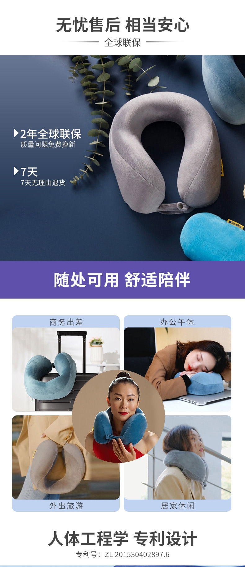 符合人体工程学的全新外形设计,给肩颈更好的支撑;颈枕在旅行使用时可轻柔变形以符合您肩颈的轮廓;内置收纳袋,小巧且可折叠