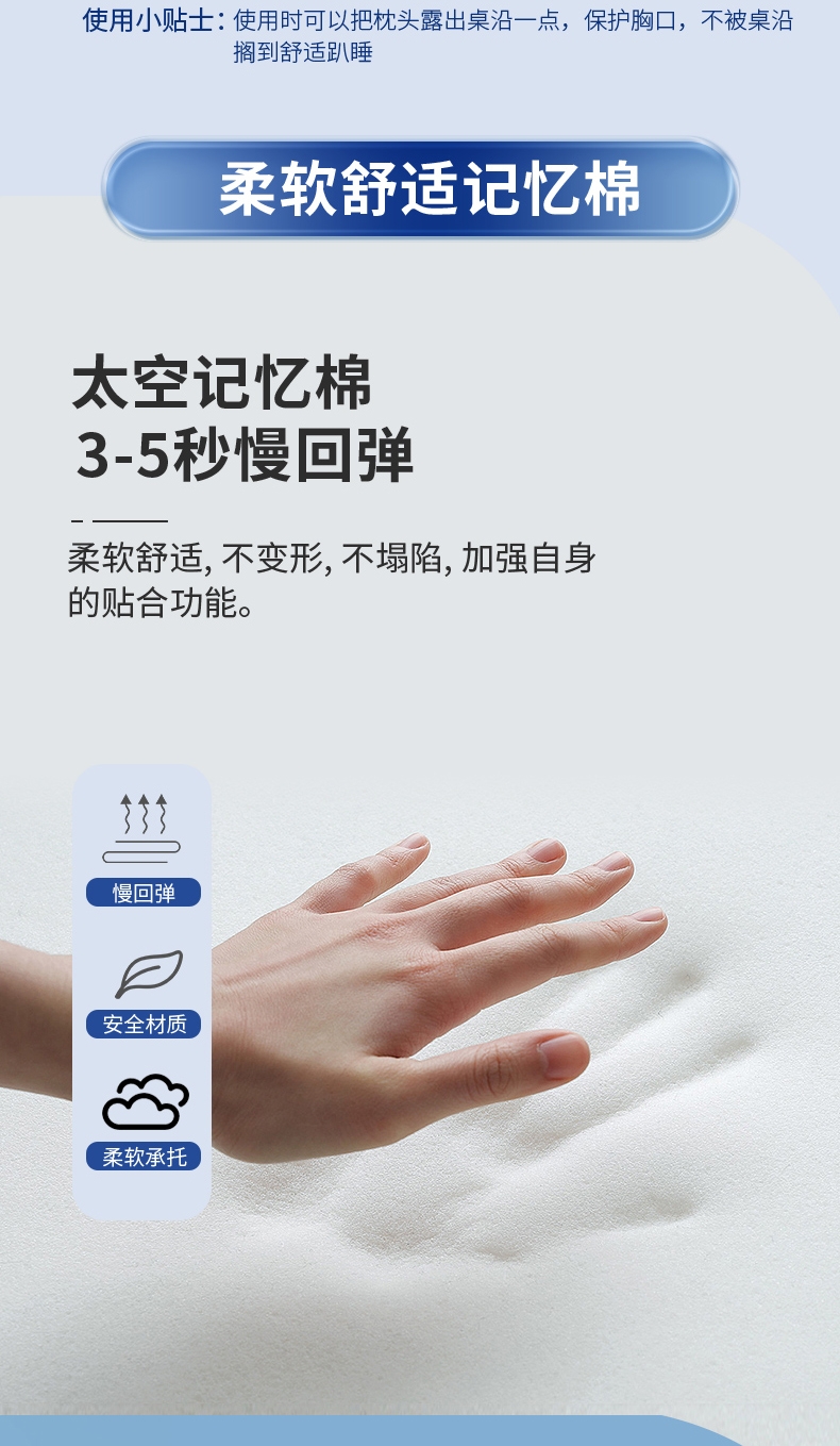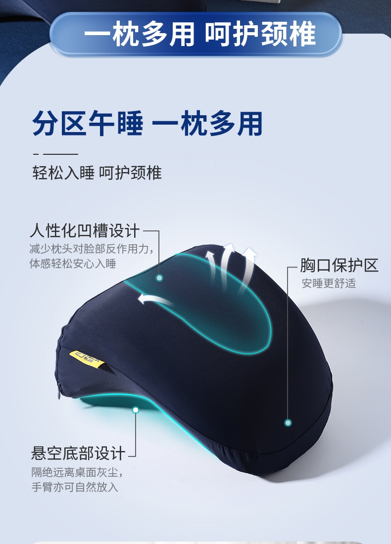 简约不简单,人体工程学外观设计;悬空底部设计,隔绝远离桌面灰尘,也有利通风散热;高密度记忆棉枕芯,Q弹轻柔和充分支撑力的完美平衡