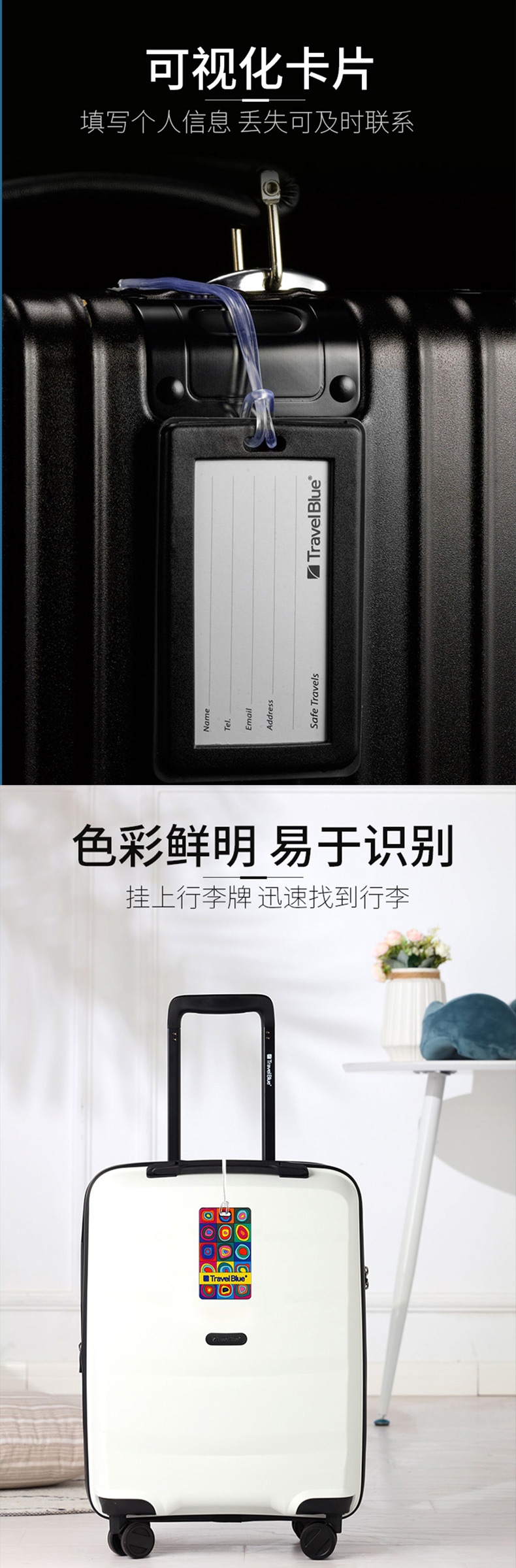 颜色鲜艳的姓名标签可易于识别您的行李;要写上您的详细信息,请拆下绑带并取出卡片;粗暴托运也难以磨损