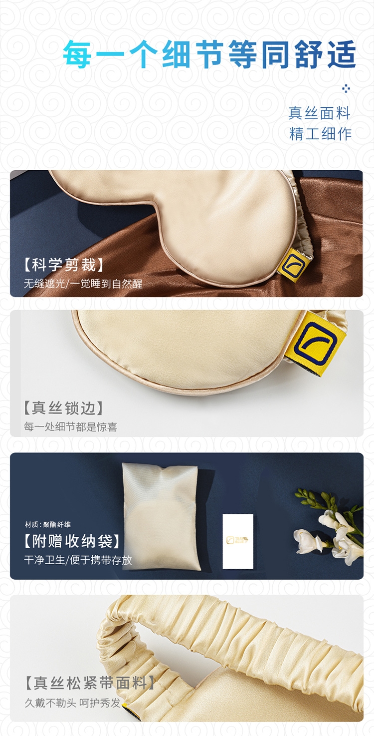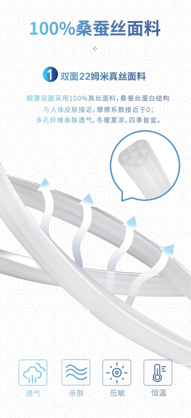 100%桑蚕丝制造;多孔纤维亲肤透气,冬暖夏凉,四季皆宜; 真丝松紧带,久戴不勒头,呵护秀发