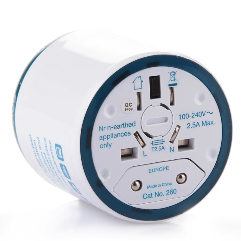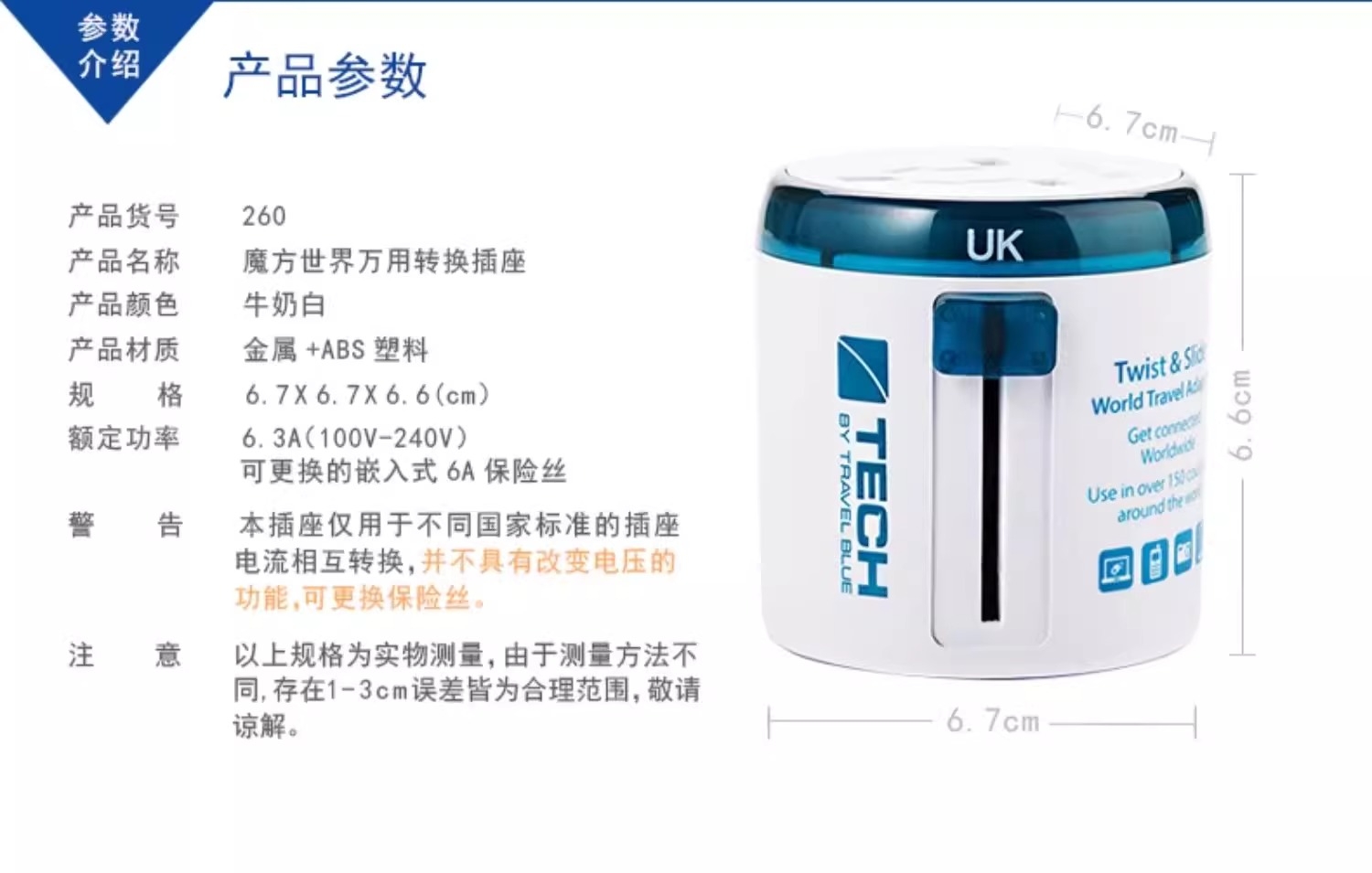使用超过世界150多个国家;内含保险丝;保险丝烧掉可随时更换,本产品可继续使用