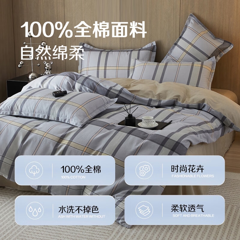 配置清单:被套*1、床单*1、枕套*2、包装*1