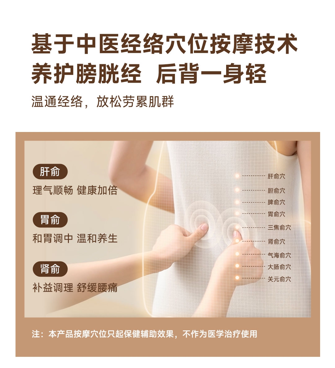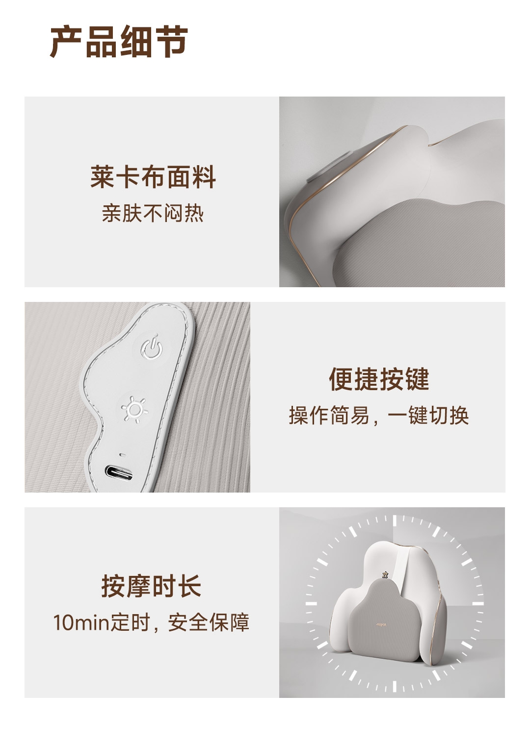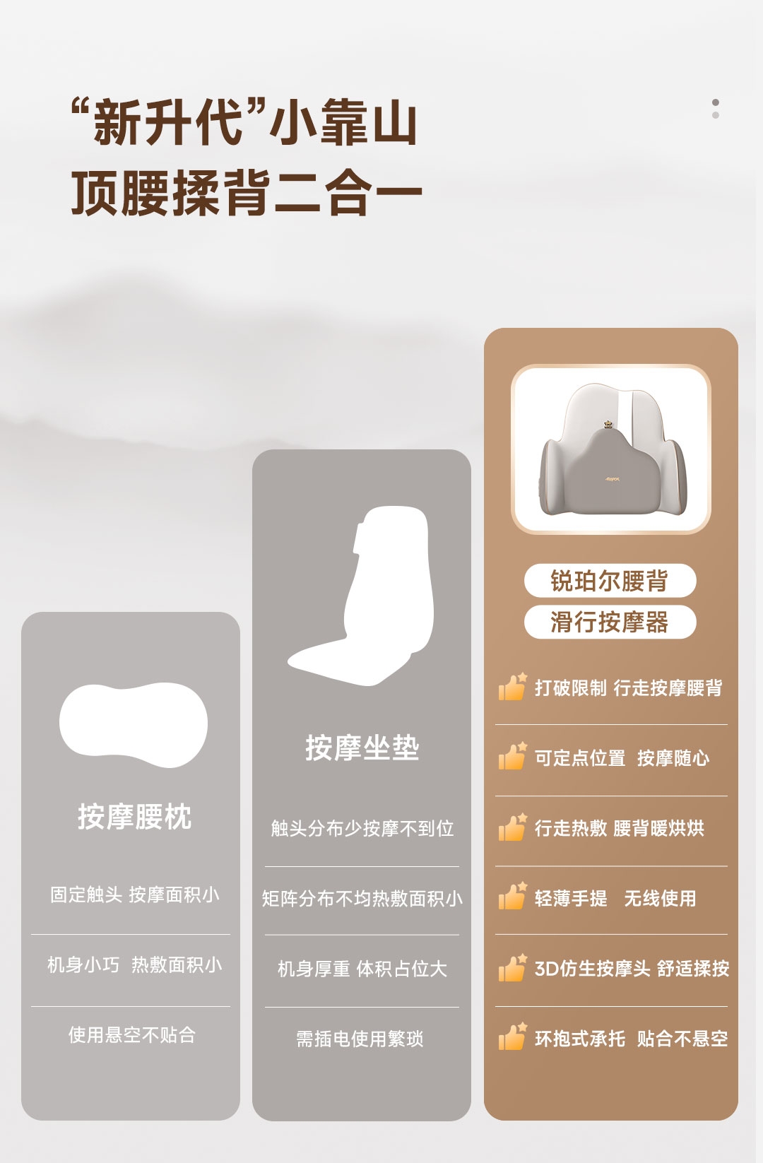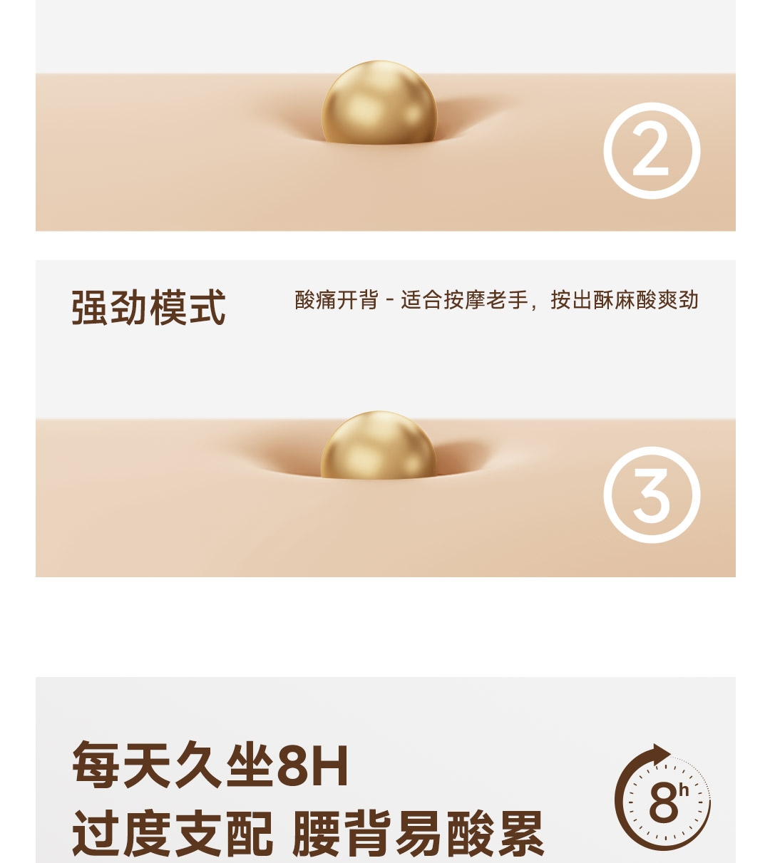上下游走推拿,从背到腰全放松动态按摩一键定点,想按;3d仿生指压按摩头,高低指节设计 点/压/按到位;背有“靠山”,送礼自用 寓意皆美好
