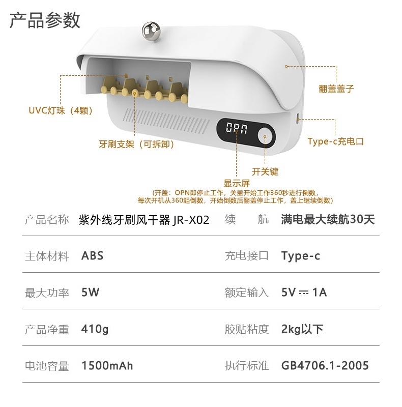 JIRUILIFE 紫外线牙刷风干器JR-X02