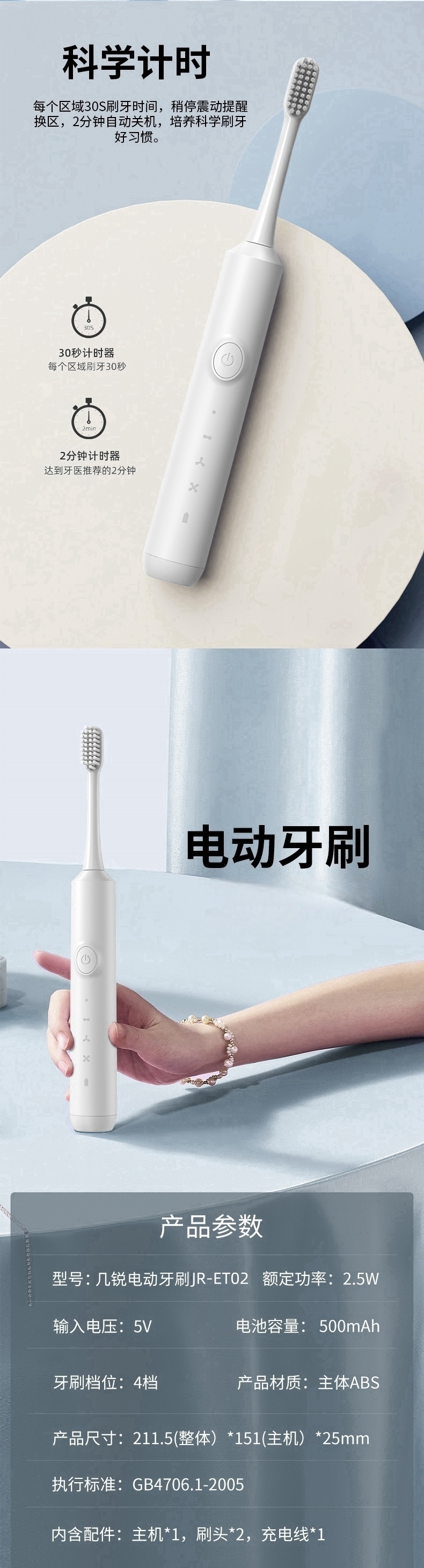 产品名称:几锐电动牙刷 产品型号:JR-ET02