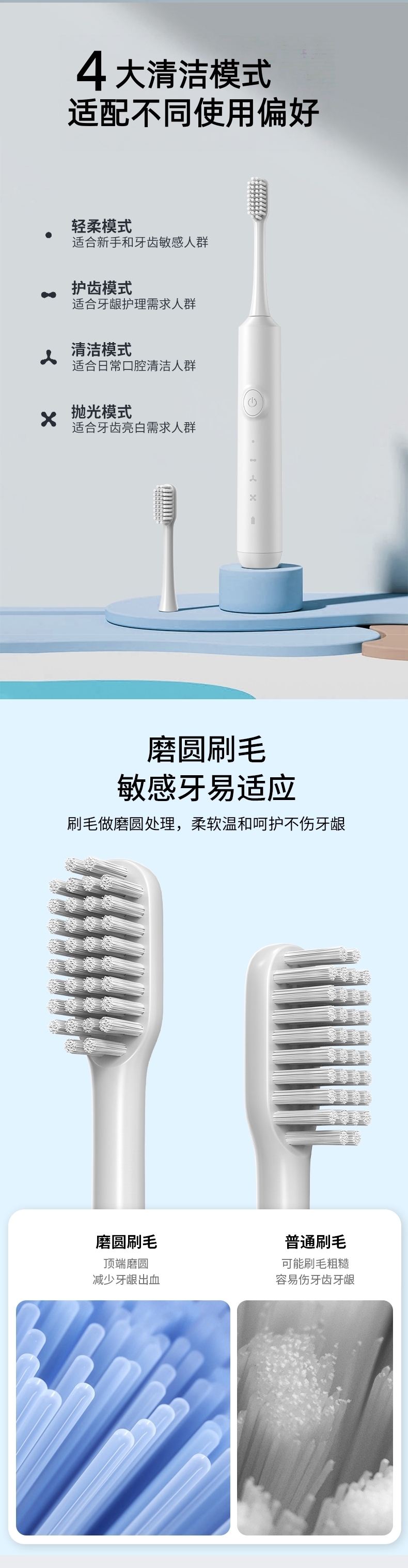 档位调节:轻柔|护齿|清洁|抛光 力度调节:标准