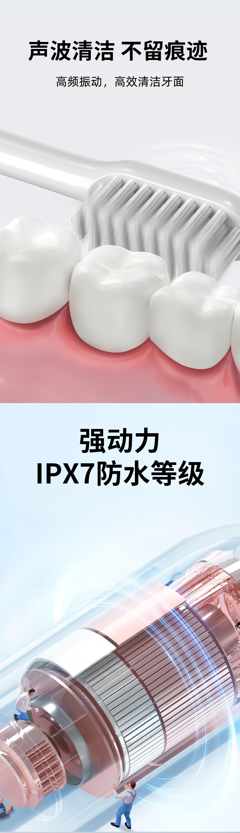 轻柔、护齿、清洁、抛光,精准应对不同口腔需求;动力强劲输出稳定,高频震动实现口腔洁净;磨圆软毛刷头,温柔接触牙龈,提升刷牙舒适感;简约便携设计,小巧机身搭配时尚外观轻松融入日常生活;IPX7级全身防水,直接冲洗无忧,使用更自由便捷