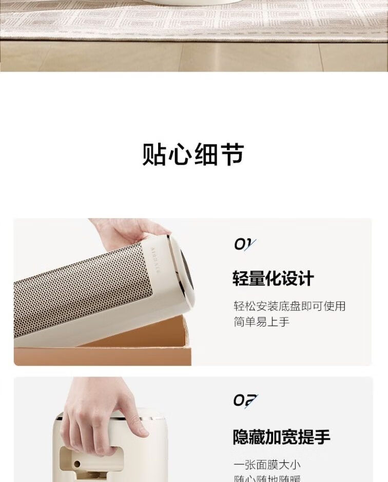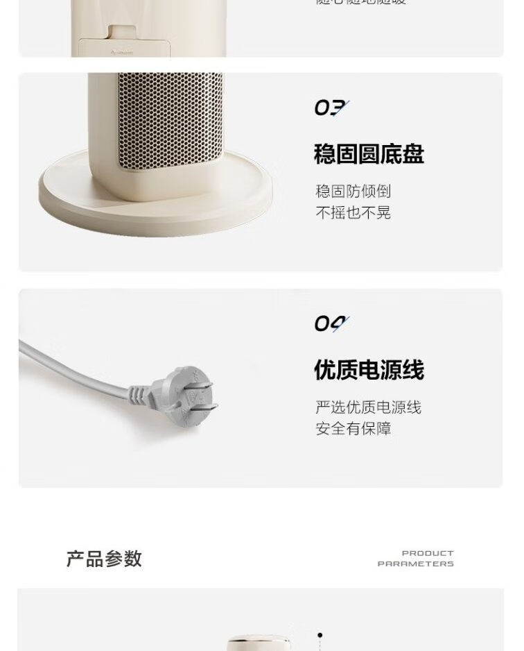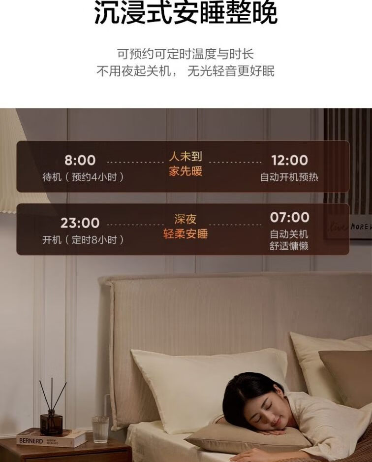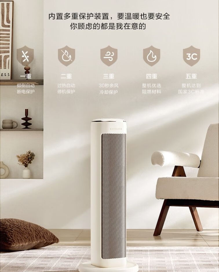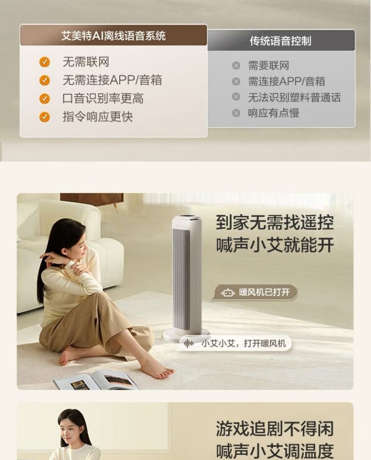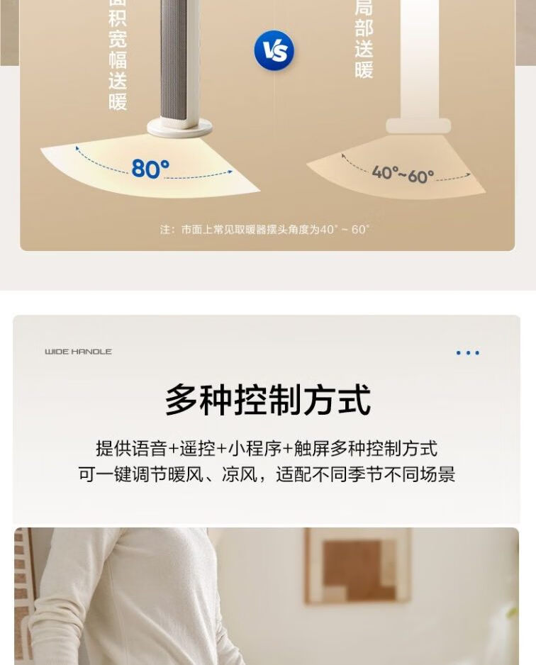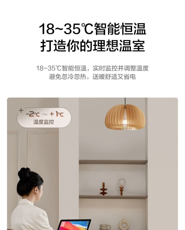 2024款全新升级,石墨烯涂层;80度广域摇头,智能+节能+睡眠三大模 式;遥控、触屏、语音、蓝牙多种操控模式