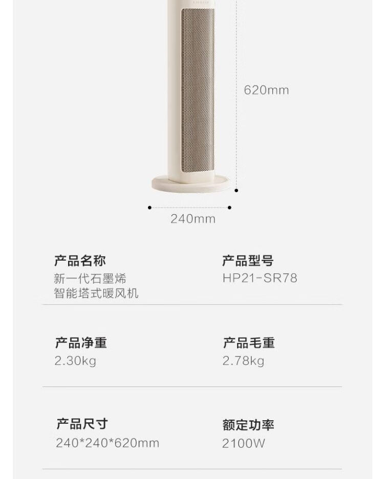 艾美特 石墨烯智能塔式取暖器HP21-SR78