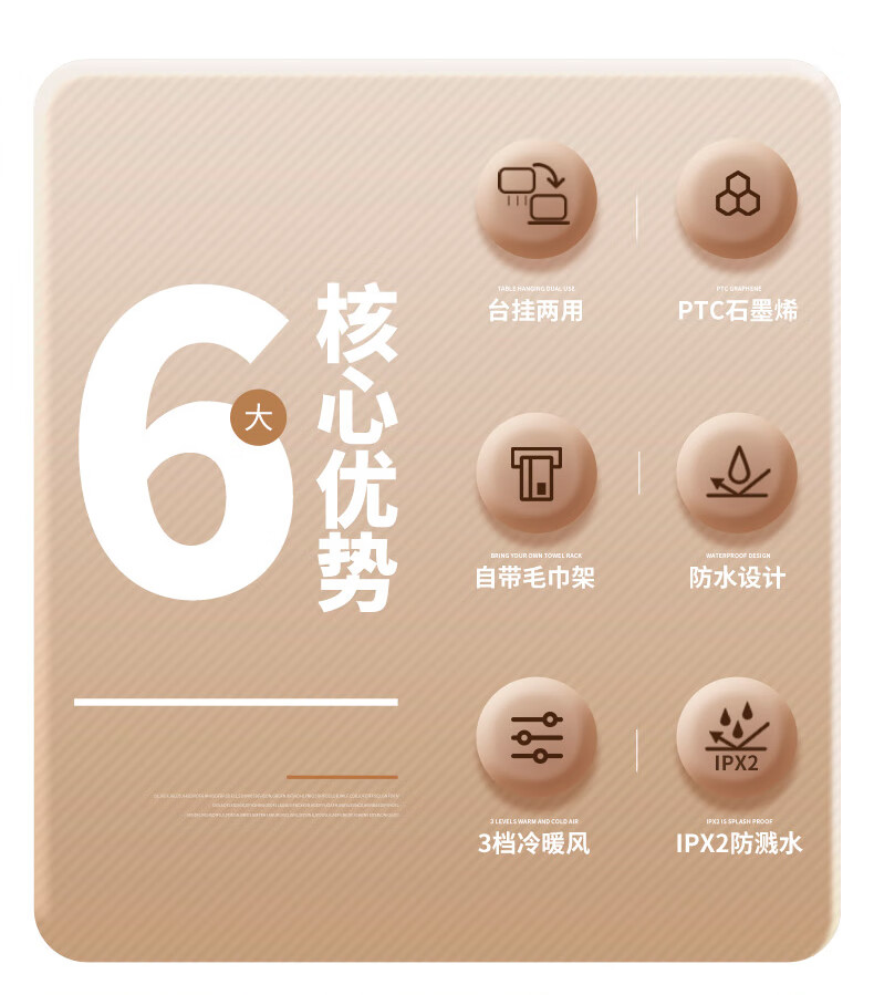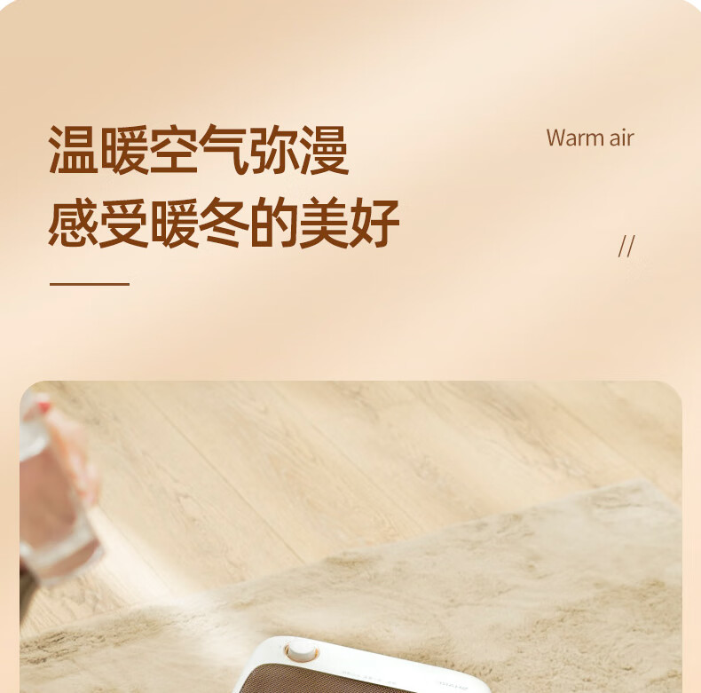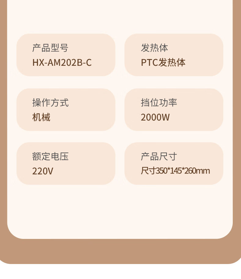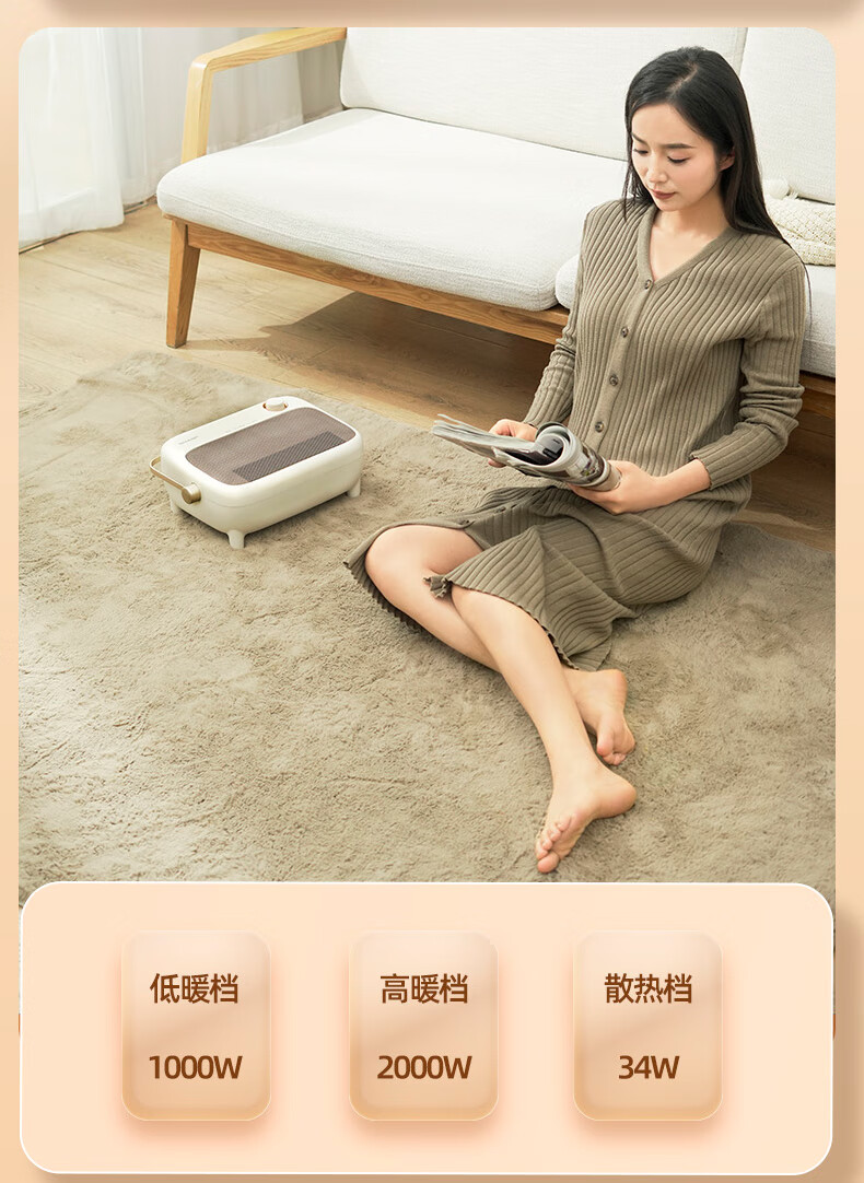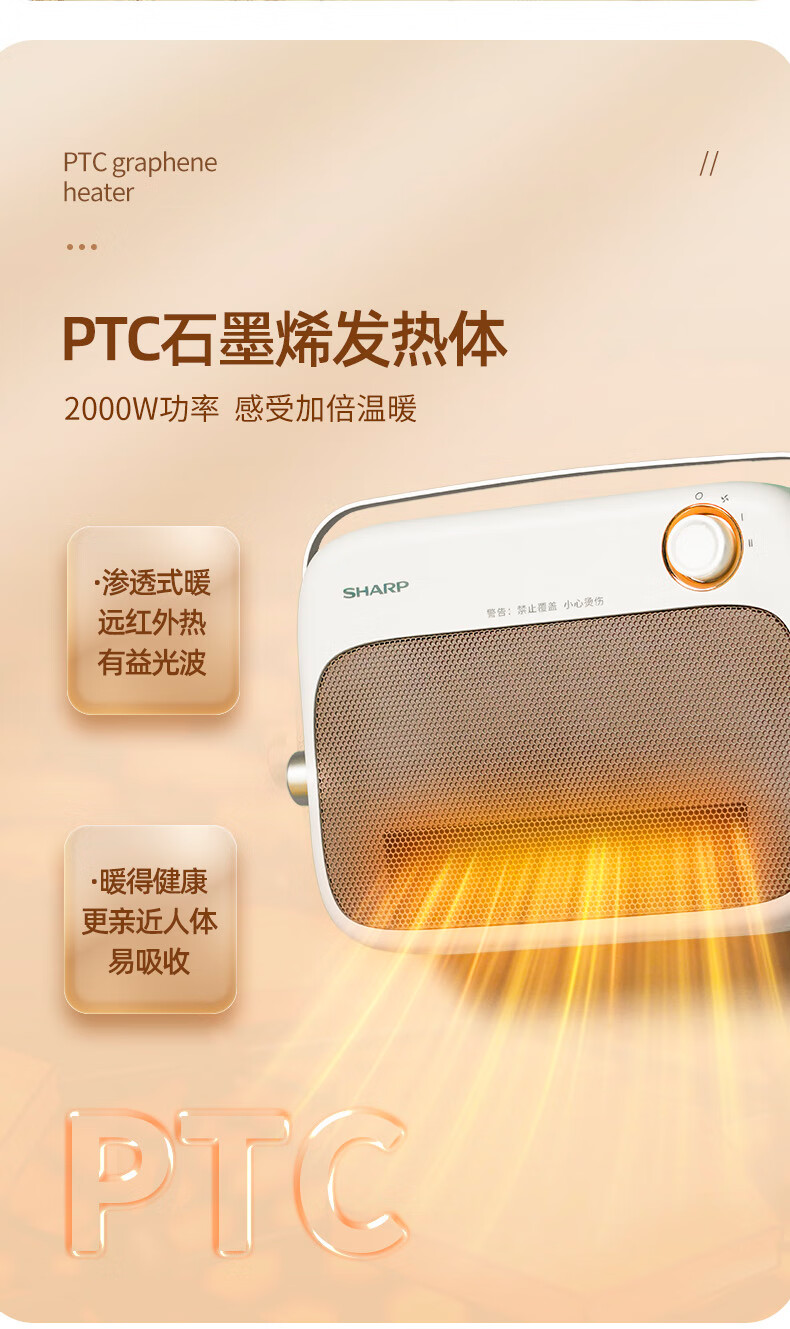 安全防护:过热保护;;34W、1100W、2000W三档功率调节;发热体:PTC石墨烯发热体;