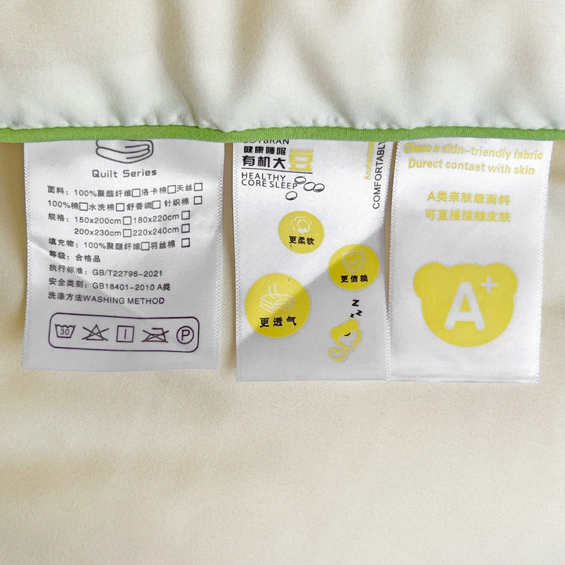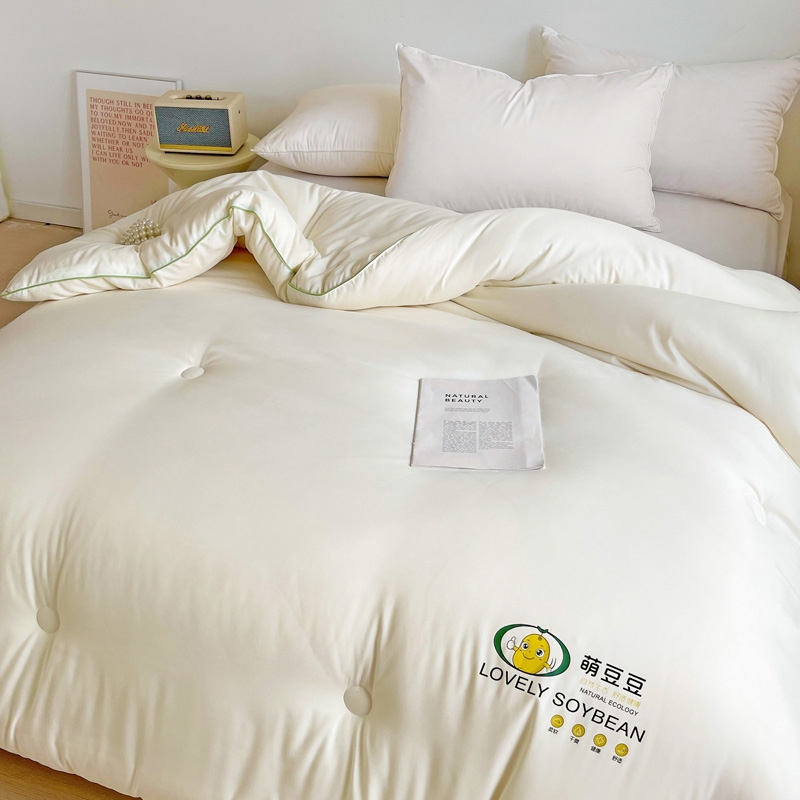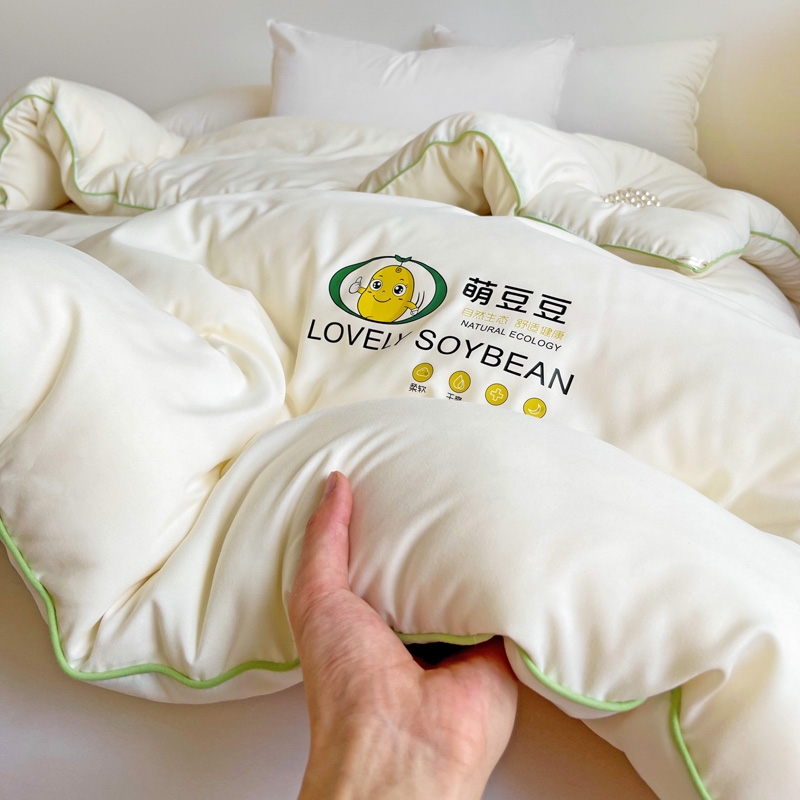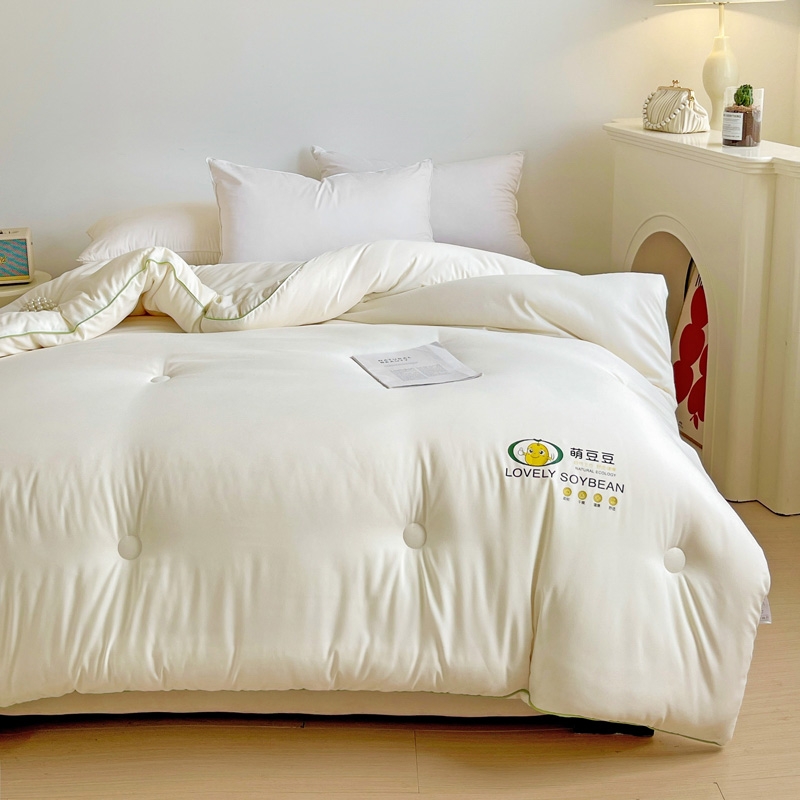 大豆被,又暖又舒适,更健康;大品牌,品质有保障;立体边条工艺美观大方、圆点绗缝固定不易起坨