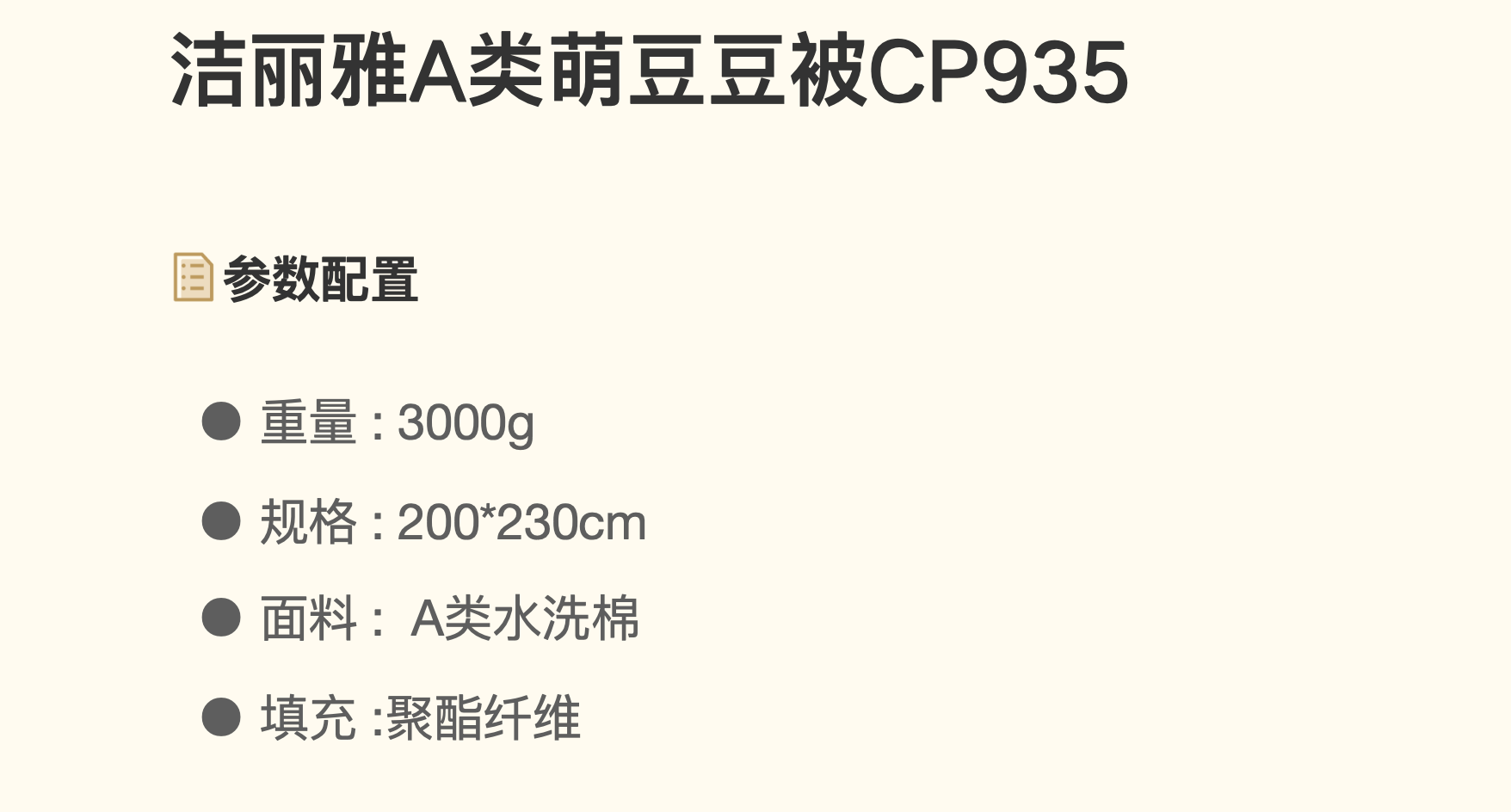 洁丽雅 萌豆豆被米色2*2.3m/6斤CP935