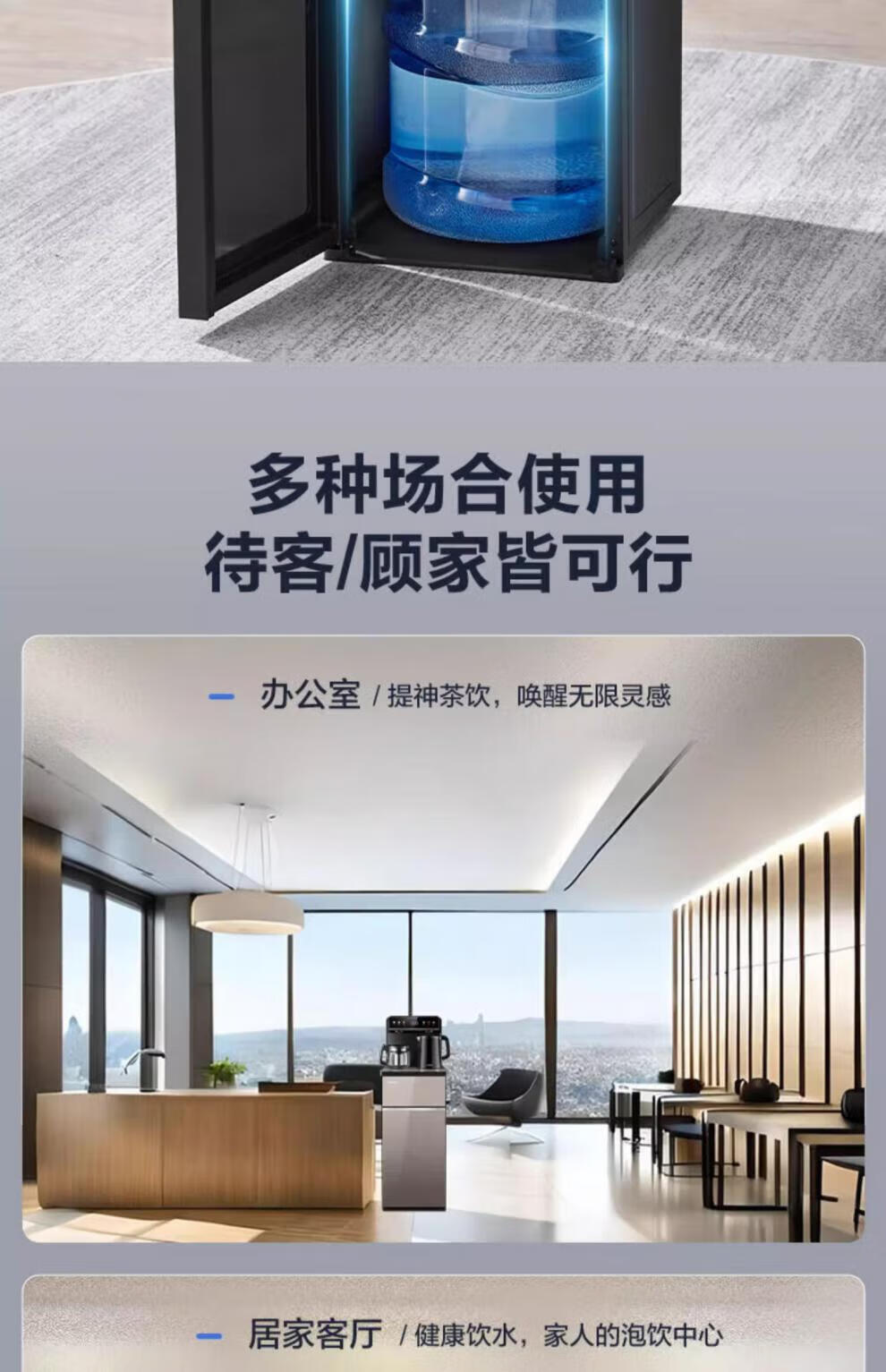 双侧长效保温,温热水随时有;双壶双出水,新鲜水随心取;智能遥控操作;大容量储物柜