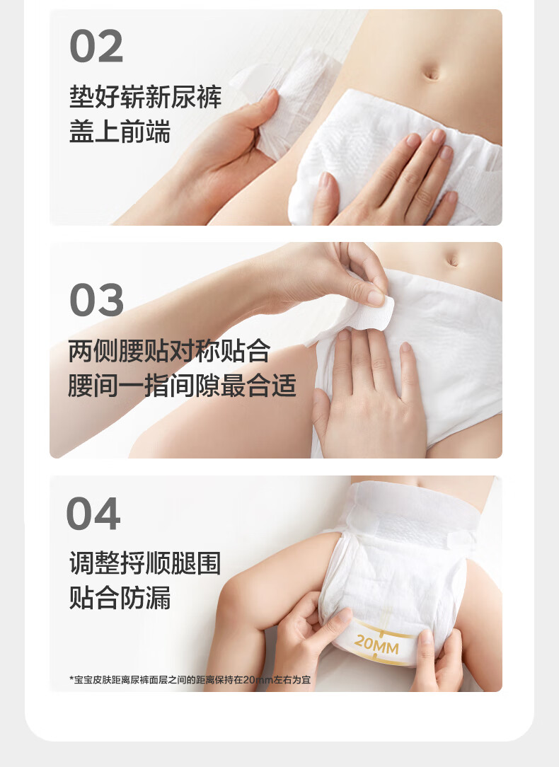触感如花瓣般柔软;花苞腰围温柔包裹,宝宝肚子不勒了;法国山茶呵护因子,对小pp更呵护;专研花脉仿生芯,吸得快吸得多更干爽