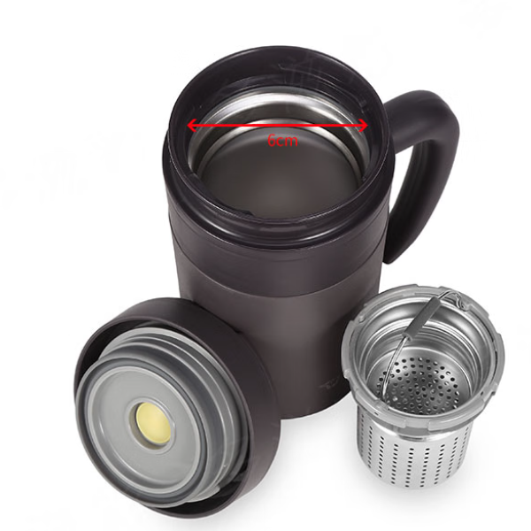 三色可选,待把手,有茶滤网,满足您喝茶的需求;容量480毫升的大容量;304不锈钢的材质