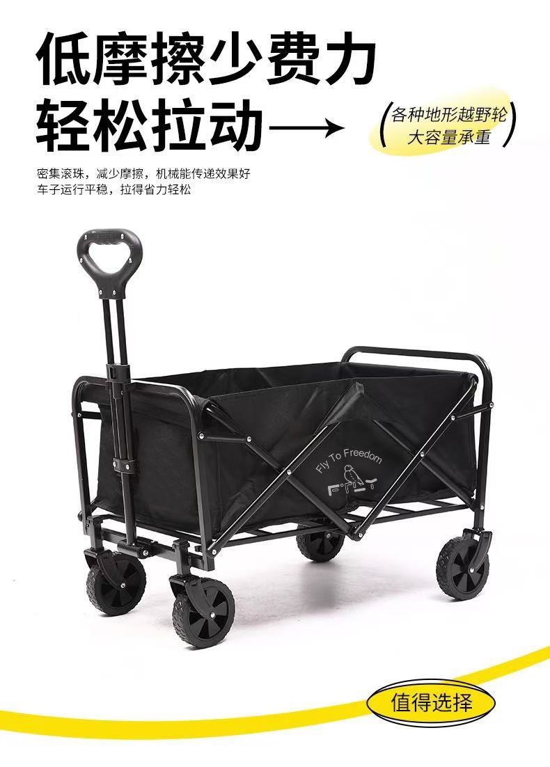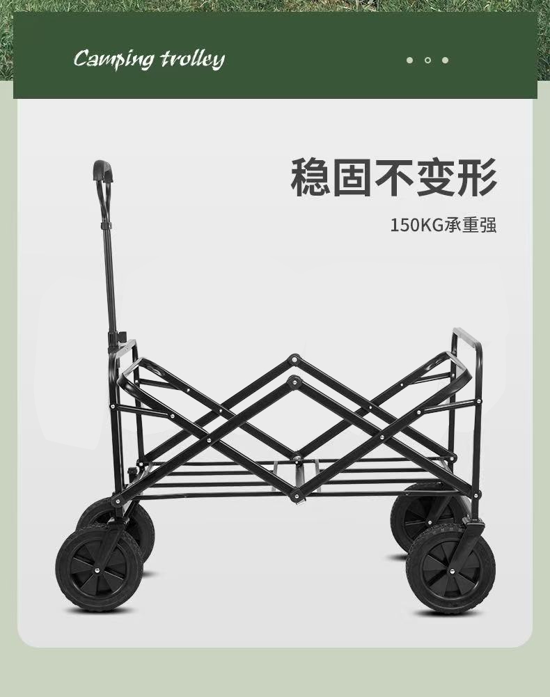 金属车架,精选牛津布;性价比高、实心轮、80-120L容量;可调节把守,自由伸缩,折叠收纳,不占空间