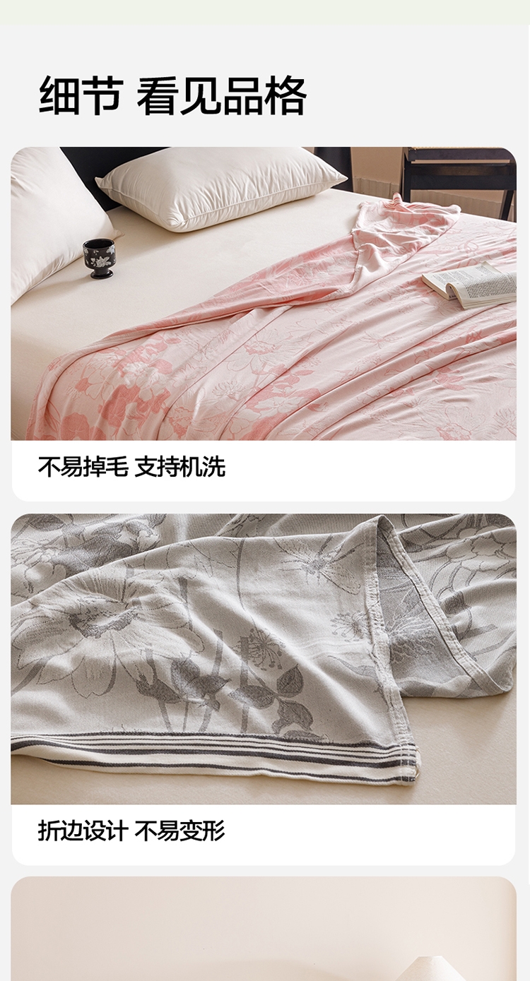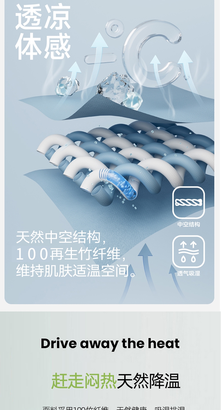 竹纤维具有天然中空结构,亲肤透气,细腻软糯,四季可;采用提花工艺,纹理清晰,做工精致,彰显品质做工;强透气,不闷热,迅速导出体表多余热量