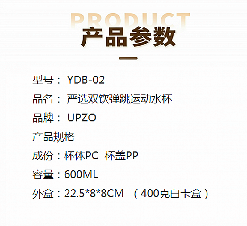 配置清单:双饮弹跳运动水杯*1 礼盒*1