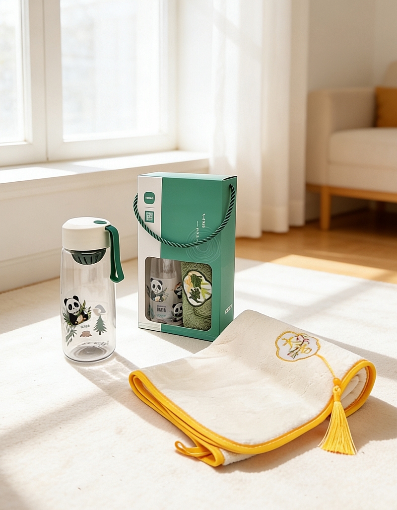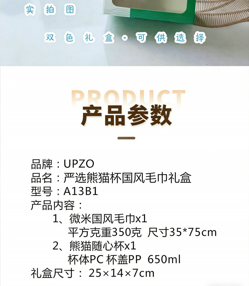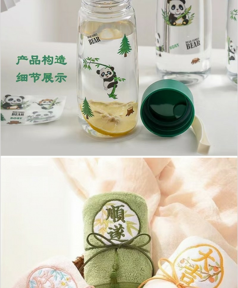 配置清单:国风微米毛巾*1 熊猫随行杯*1 礼盒*1