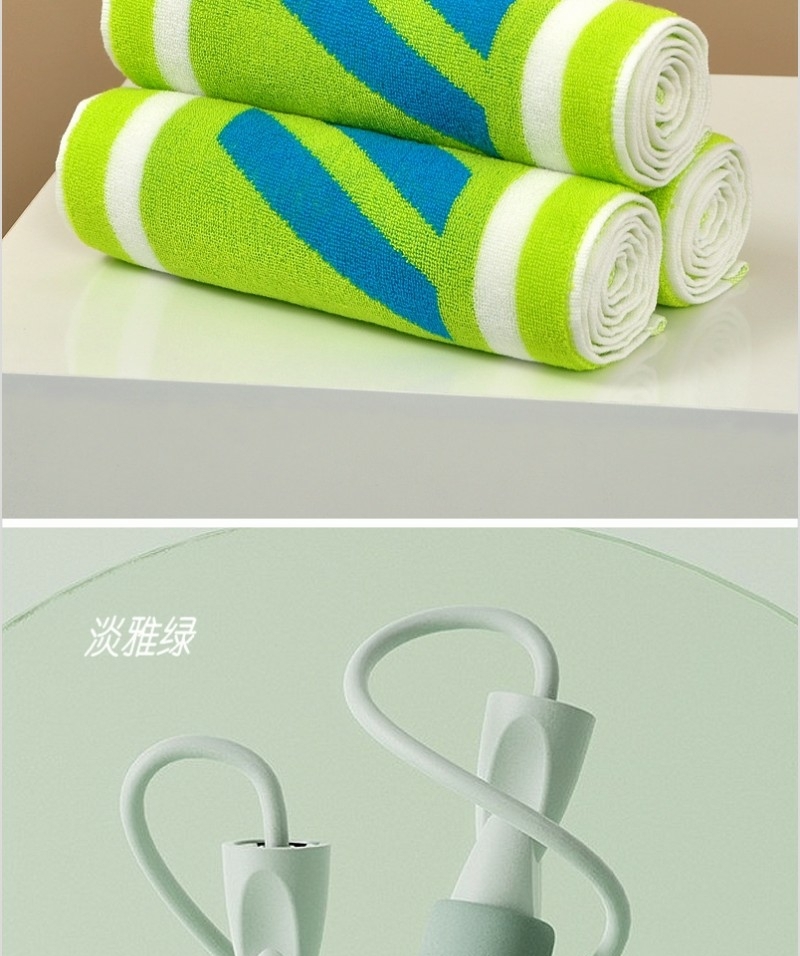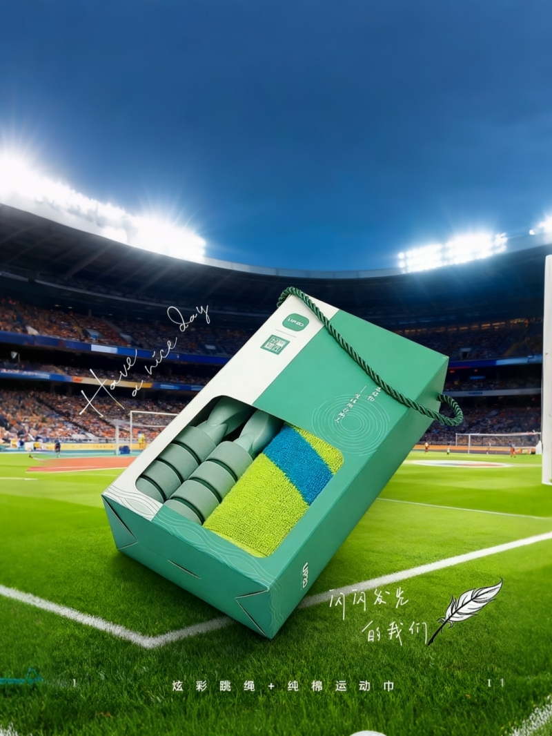 纯棉运动巾设计靓丽 运动专属;炫彩跳绳时尚设计 优异品质;礼盒设计简约 可手提