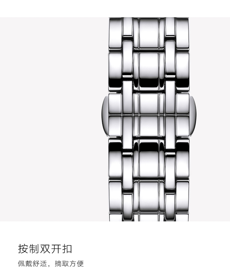 多珠链精钢表带;按制双开扣;条形字钉