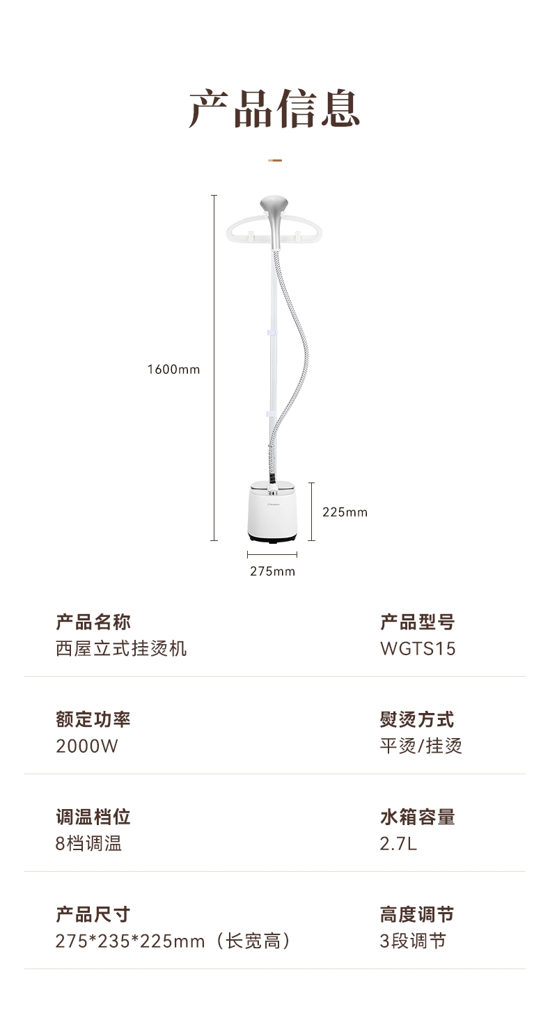 西屋 手持立式蒸汽挂烫机WGTS15