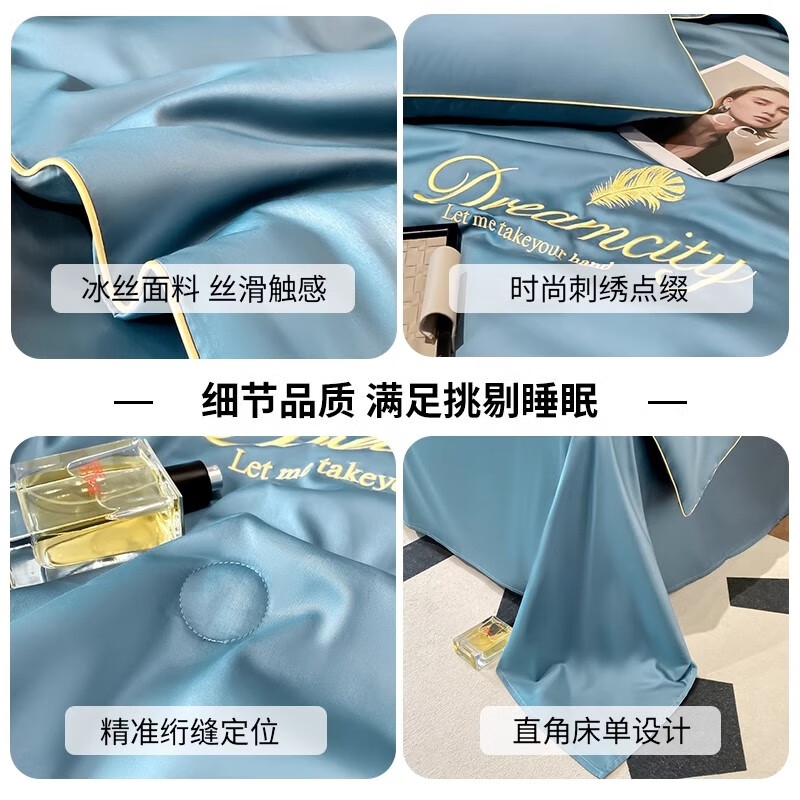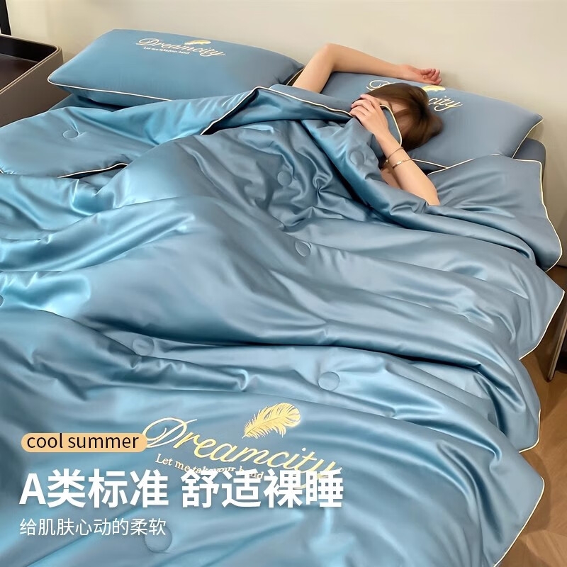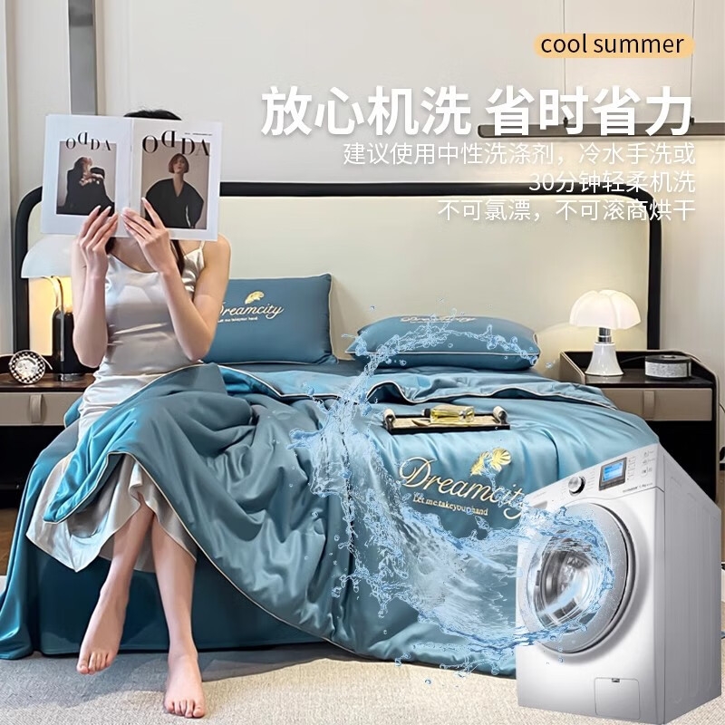 甄选水洗冰丝面料,丝滑透气,凉而不冰;优选整张棉纤维填充,蓬松柔软,裸睡无忧;新一代活性印染工艺,颜色靓丽,不易起球,不易褪色调
