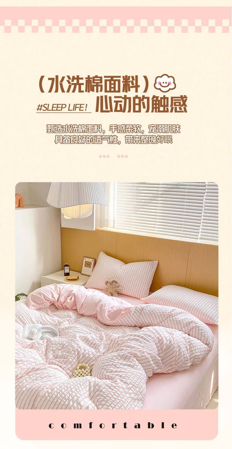 配置清单:被套*1、床单*1、枕套*2、包装*1