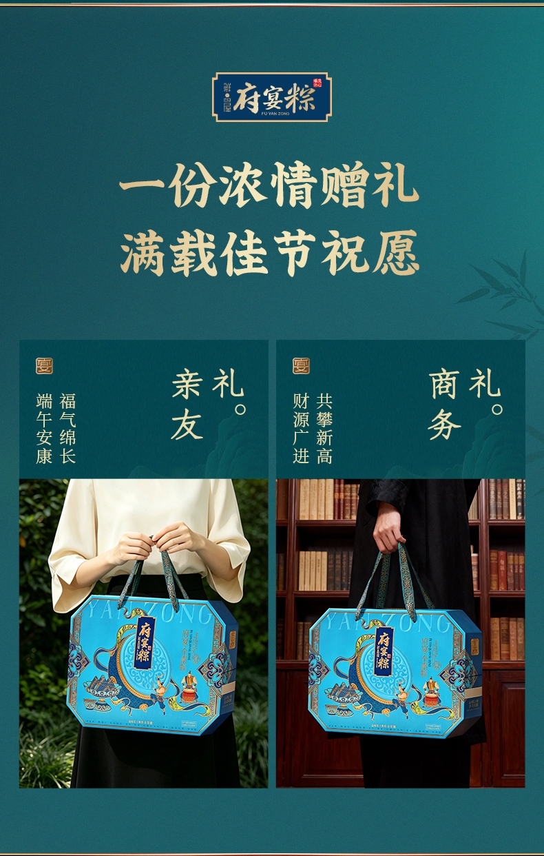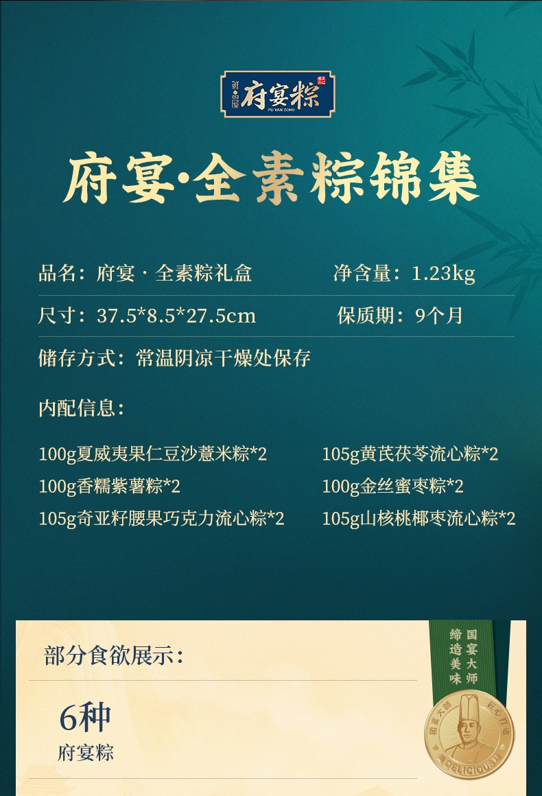 鲜品屋端午节高端府宴粽子礼盒;企业团购福利送礼送父母长辈;内含十二粽六味全素粽,香粽个个用料扎实